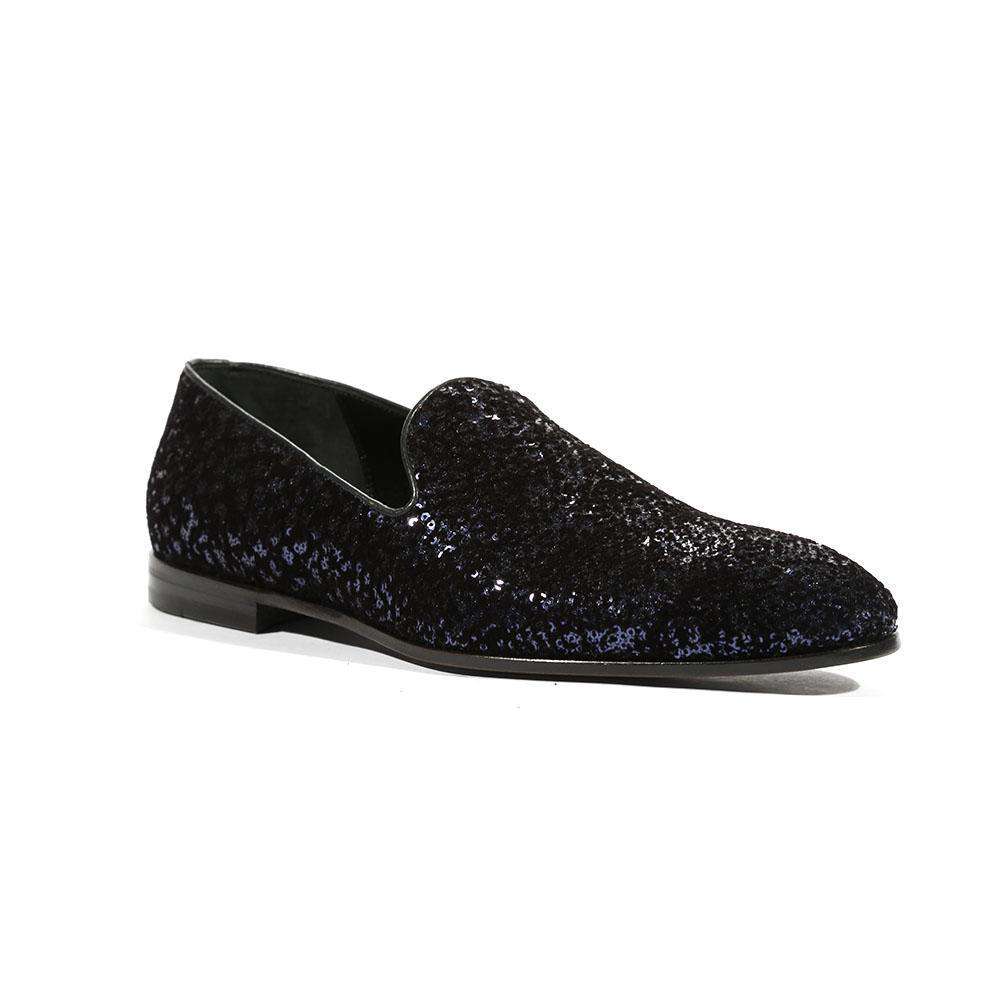 Cesare Paciotti Luxury Italian Men's Loafers Suede Paill Flock EclipseA Navy Designer Shoes (CPM5486)