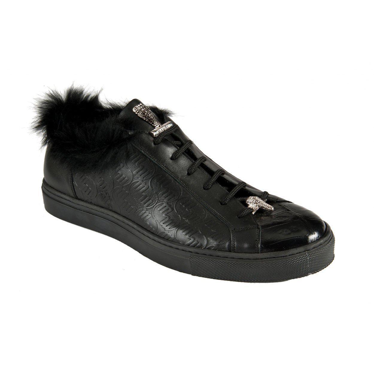 • Mauri Men's Designer Shoes Black Exotic Caiman Crocodile / Nappa Sneakers 8591 (MAO1049)