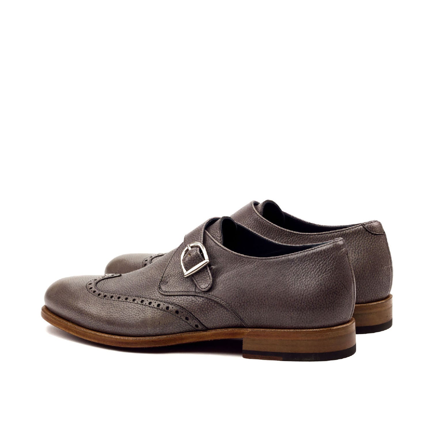 - Ambrogio Handmade Custom Men's Shoes Gray Full Grain Leather Monk-Strap Loafers (AMB1923)