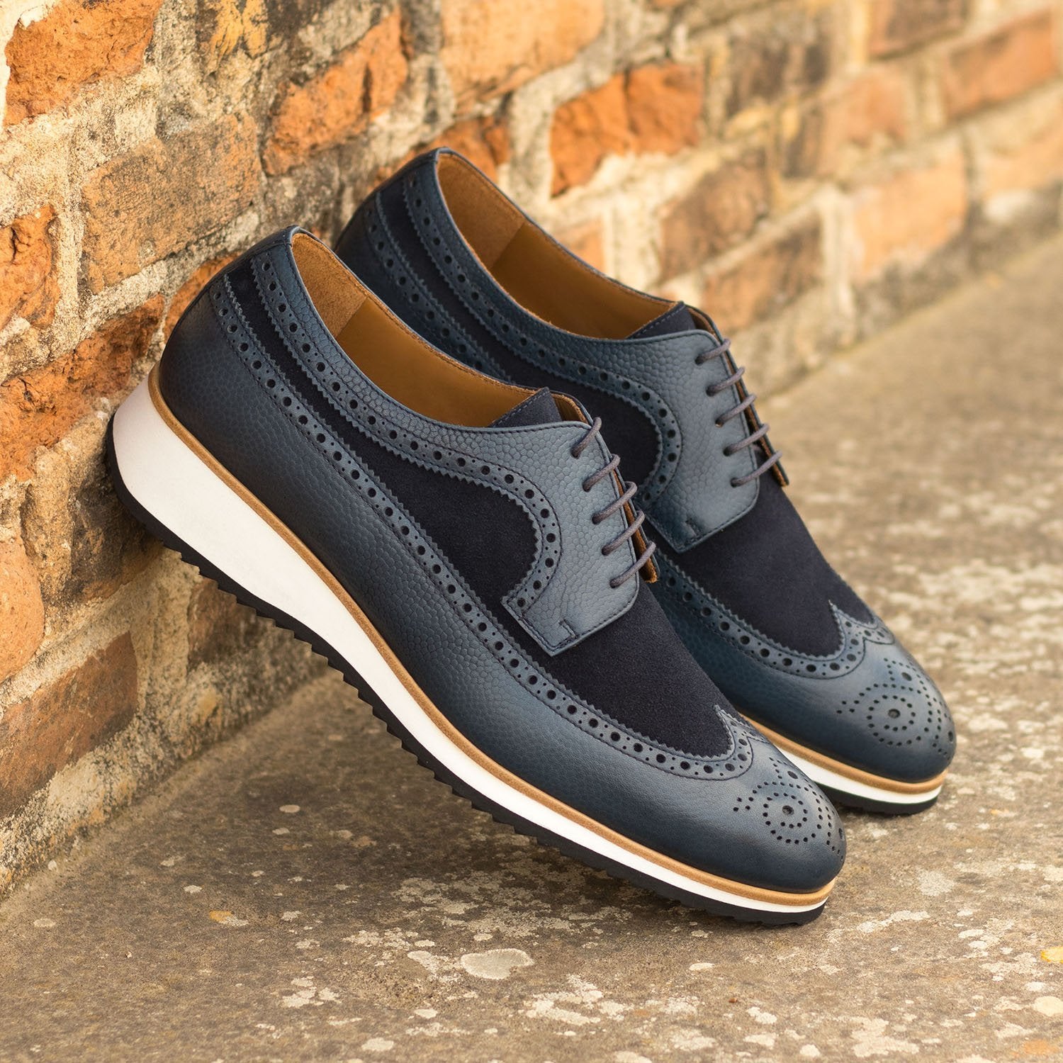 - Ambrogio Handmade Custom Men's Shoes Navy Suede / Pebble Grain Leather Wingtip Oxfords (AMB1911)