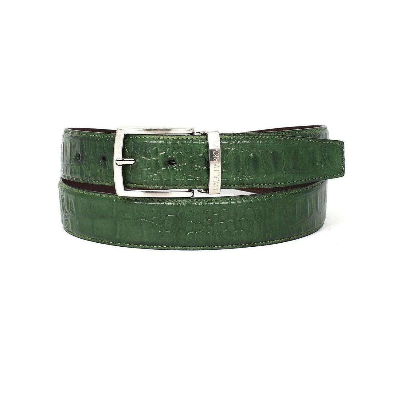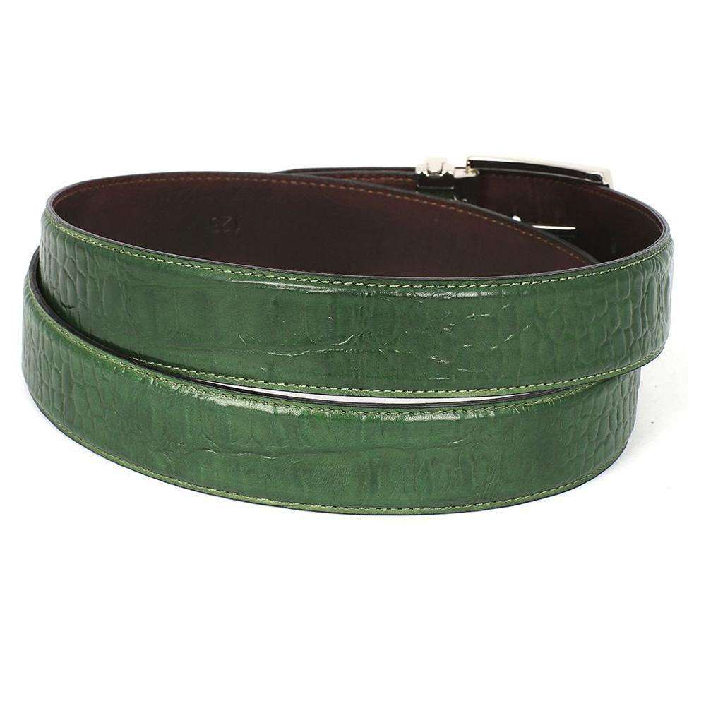 - Paul Parkman Men's Hand-Painted Belt Green Embossed Calfskin Leather (PMB208)