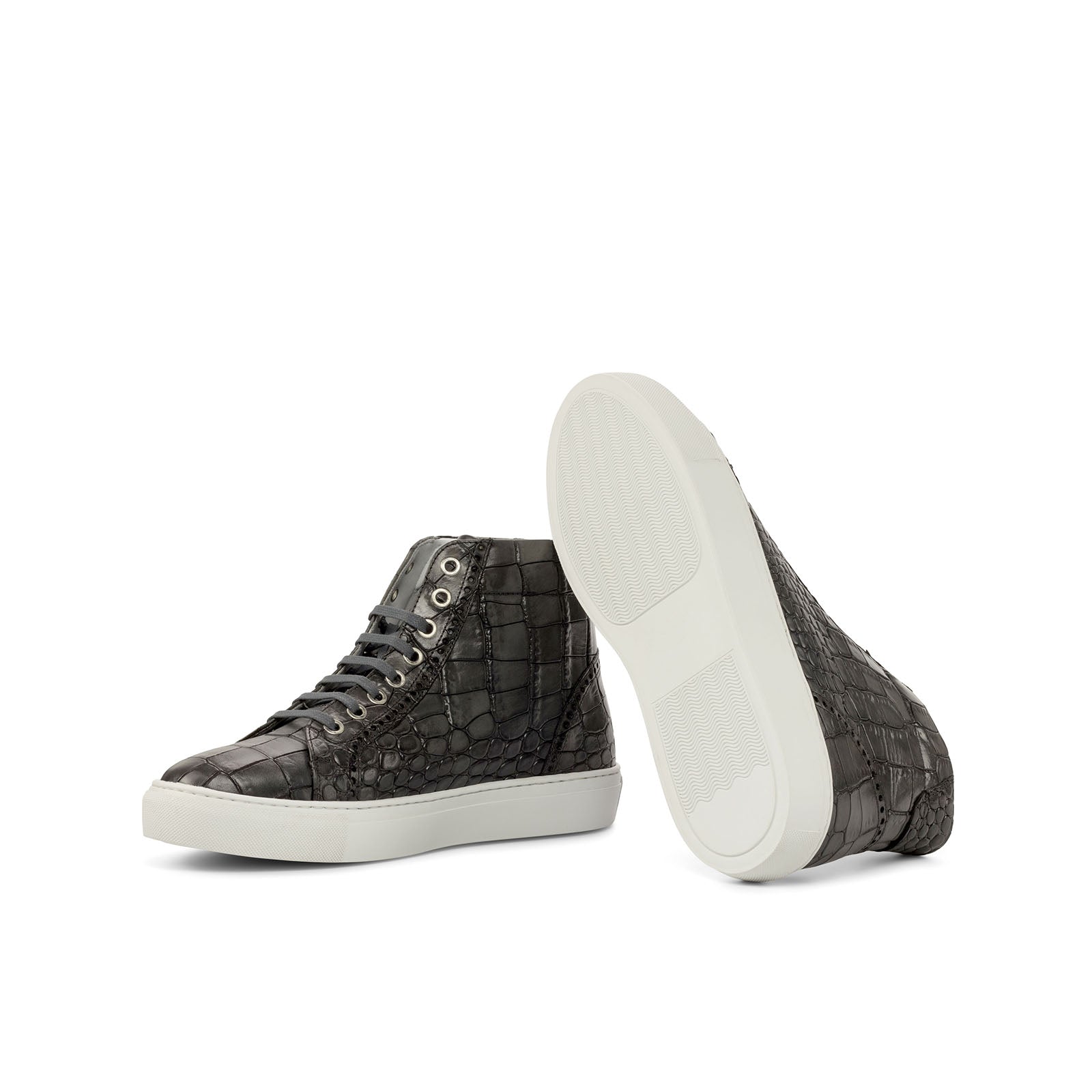 • Ambrogio Handmade Men's Shoes Gray Crocodile Print Leather Casual High-Top Sneakers (AMB2234)