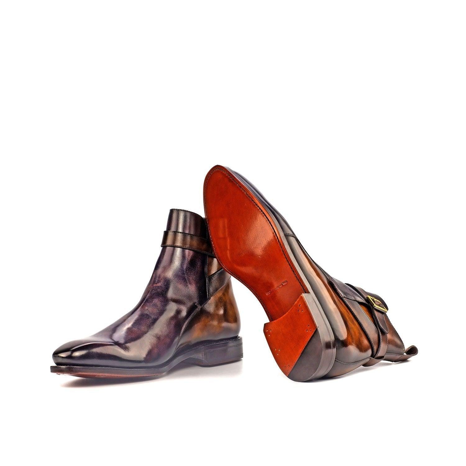 - Ambrogio 4411 Handmade Custom Men's Shoes Aubergine & Tobacco Patina Leather Atticus Buckle Boots (AMB1551)