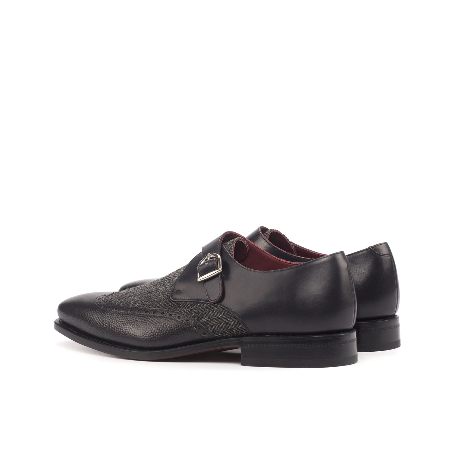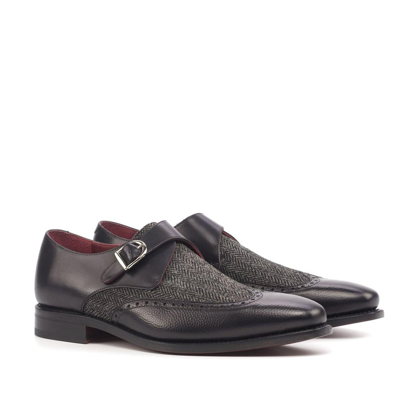 Ambrogio Handmade Men's Handmade Custom Shoes Black Fabric / Pebble Grain / Calf-Skin Leather Monk Strap (AMB1833)