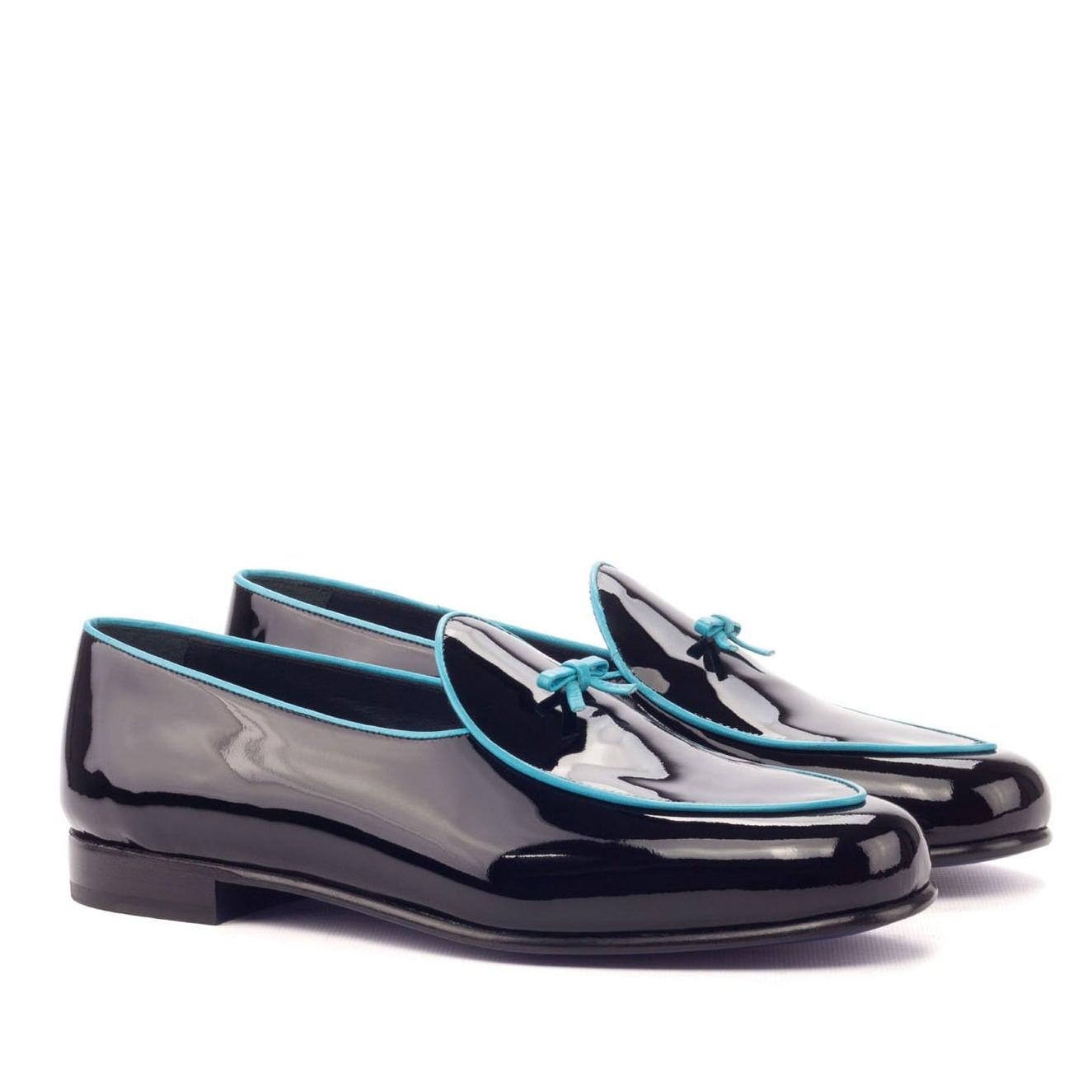 - Ambrogio 3115 Handmade Custom Men's Shoes Black Patent Leather Belgian Loafers (AMB1770)