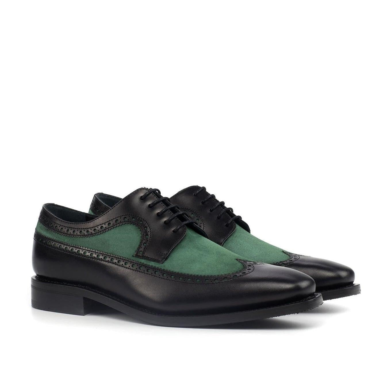 - Ambrogio 4394 Handmade Custom Men's Shoes Green & Black Suede / Calf-Skin Leather Longwing Oxfords (AMB1540)