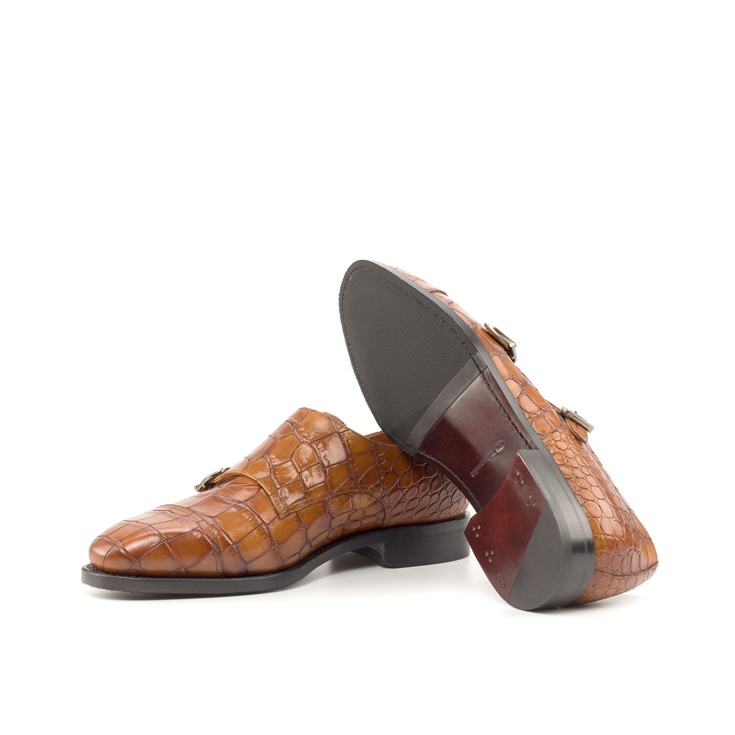 - Ambrogio Handmade Custom Men's Shoes Cognac Crocodile Print / Calf-Skin Leather Monk-Straps Loafers (AMB2195)
