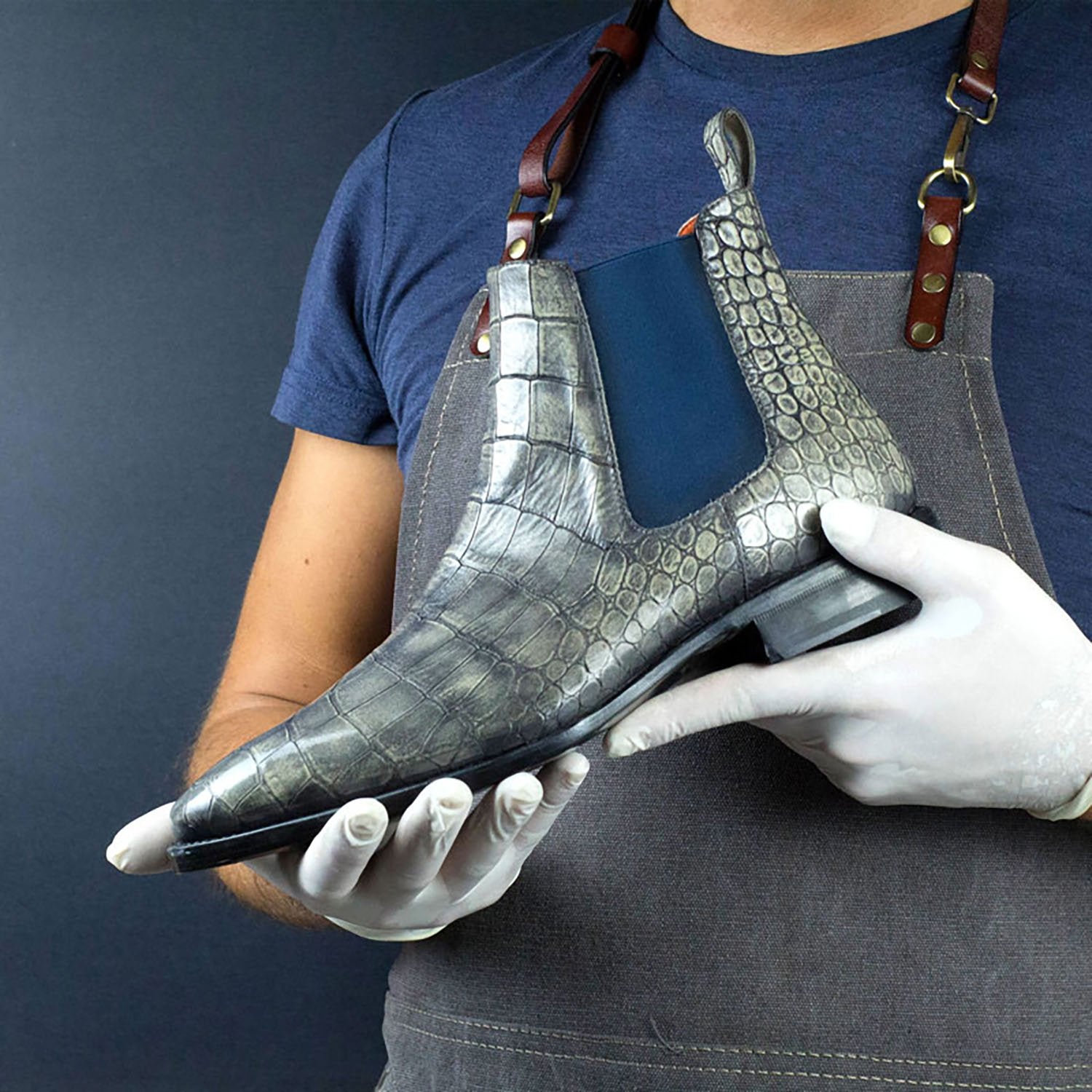 The artistry behind this masterpiece is achieved through a technique known as *Anticatura*—the Italian term for antique finishing. This revered method, mastered by Italian and French shoemaking maestros, transforms each shoe into a one-of-a-kind creation. In the skilled hands of an antique finisher, the leather upper becomes a canvas for craftsmanship. The *Anticatura* process involves meticulous hand-dyeing, requiring 8 to 10 hours per pair to develop a rich, nuanced patina that exudes timeless elegance and depth. Each finish is a testament to tradition, skill, and the pursuit of perfection.