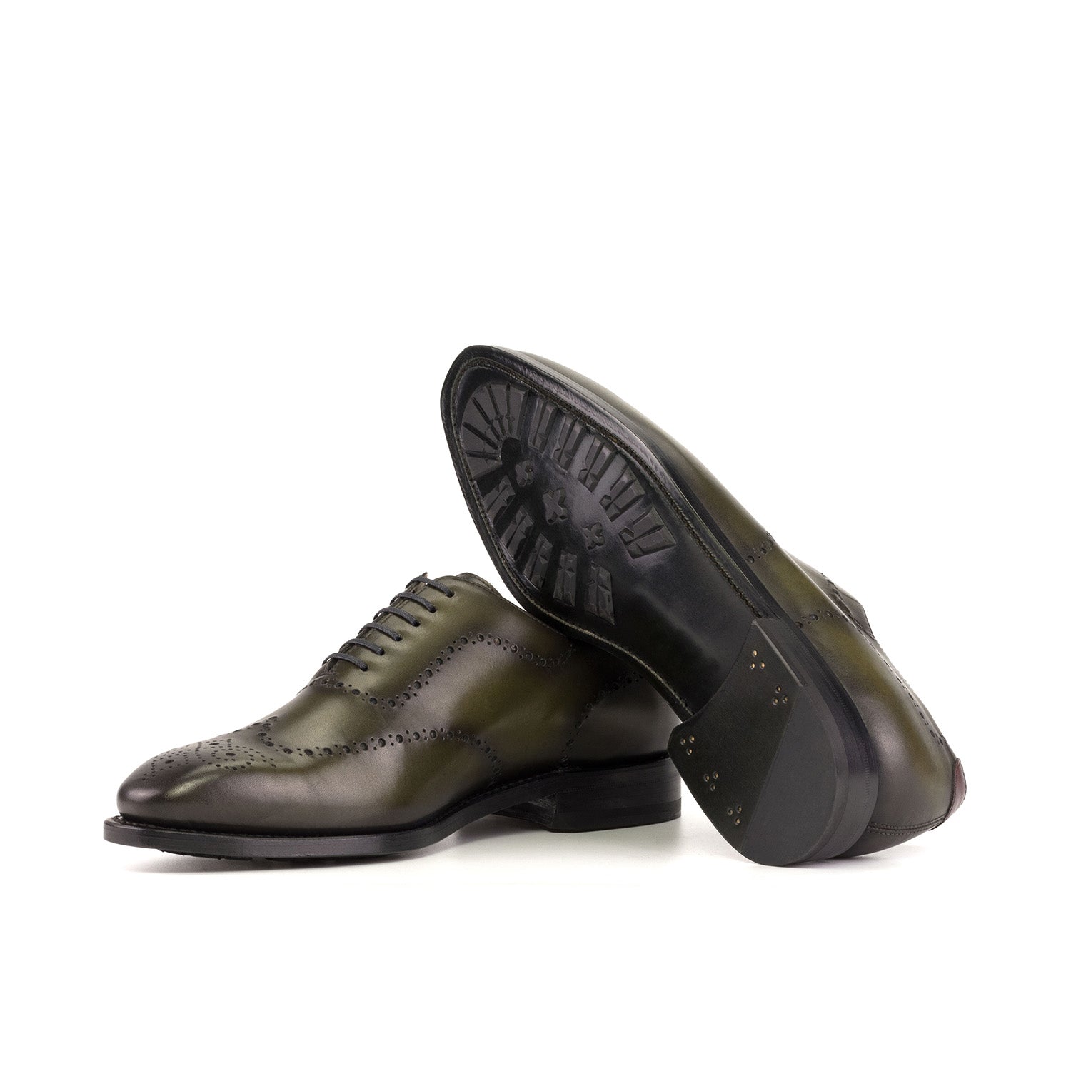 - Ambrogio Bespoke Men's Shoes Olive Calf-Skin Leather Whole-Cut Oxfords (AMB2427)