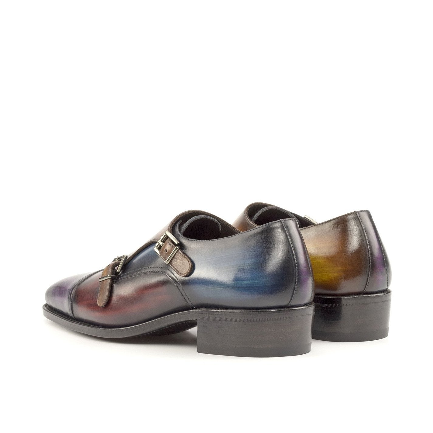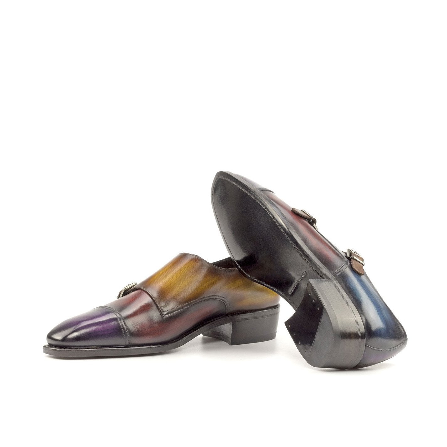 - Ambrogio Handmade Custom Men's Shoes Denim, Cognac, Purple & Burgundy Patina Leather Monk-Straps Loafers (AMB2227)