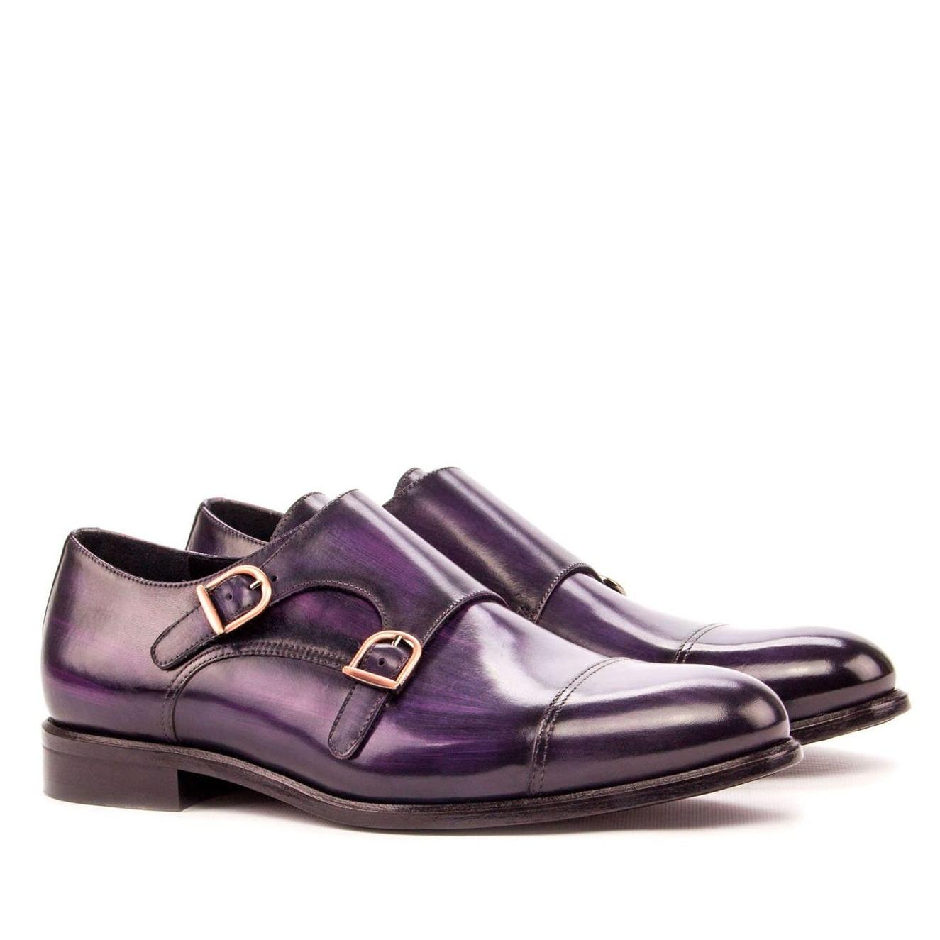 - Ambrogio Handmade Custom Men's Shoes Purple Patina Leather Monk-Straps Loafers (AMB1985)