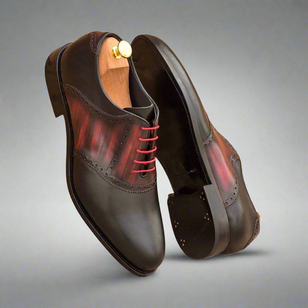 Ambrogio Handmade Men's Handmade Custom Shoes Black & Burgundy Patina / Calf-Skin Leather Saddle Oxfords (AMB1330)