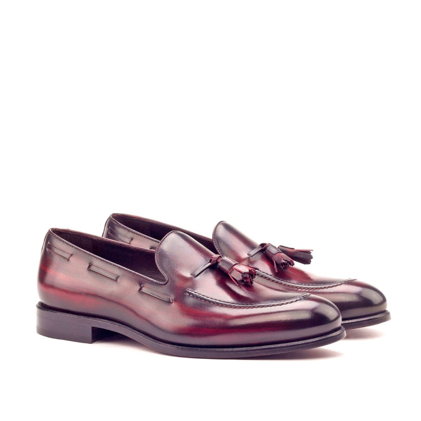 - Ambrogio 2919 Bespoke Custom Men's Shoes Burgundy Patina Leather Tassels Loafers (AMB1472)