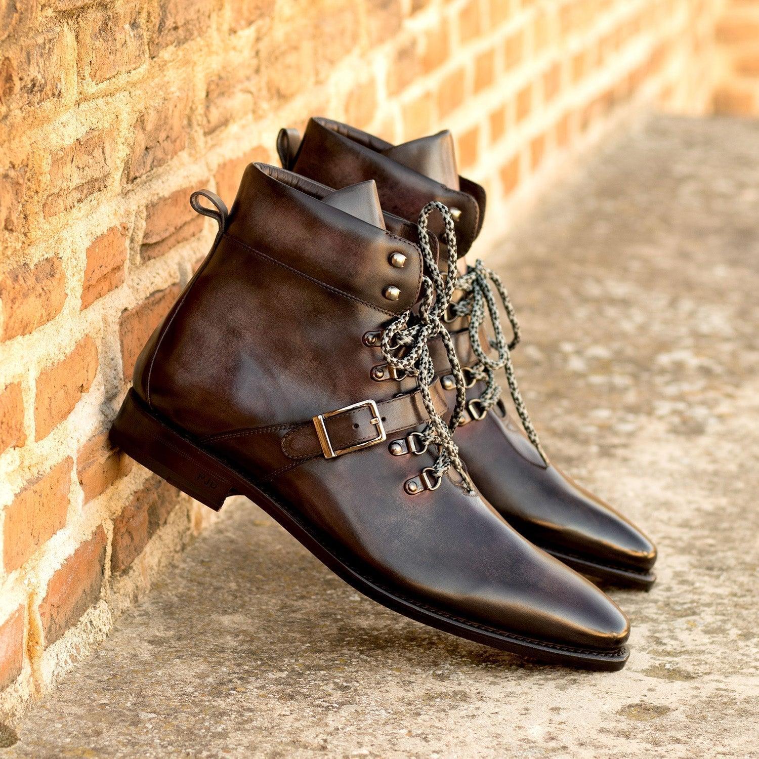 - Ambrogio Handmade Men's Shoes Aubergine Purple Patina Leather Hiking Boots (AMB2255)