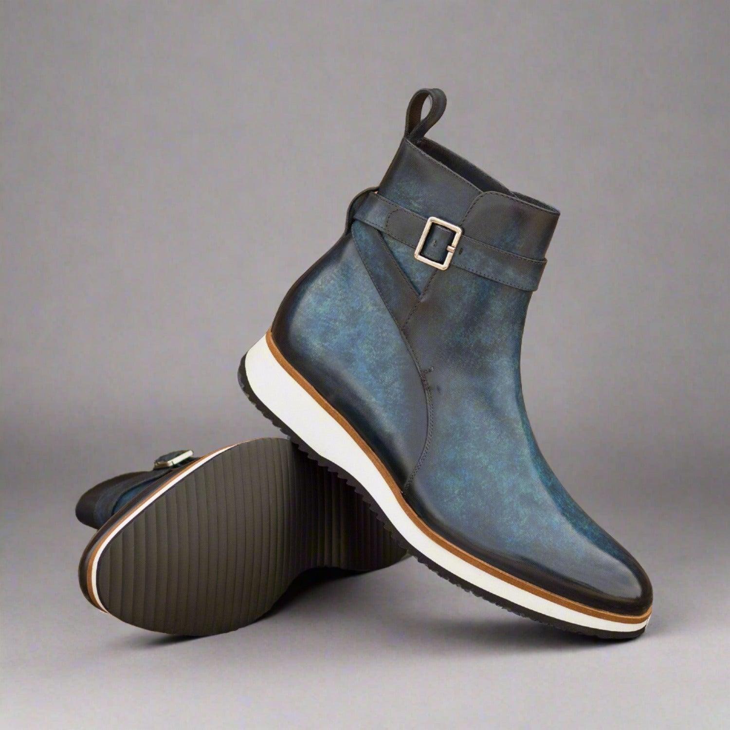 - Ambrogio Handmade Men's Shoes Denim Patina Leather Jodhpur Boots (AMB2288)