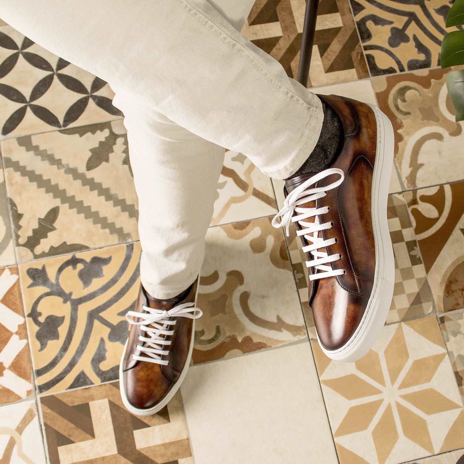 - Ambrogio Handmade Men's Shoes Fire Patina Leather Casual Trainer Sneakers (AMB2313)