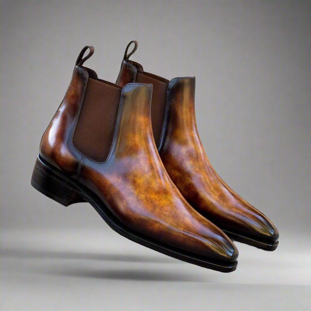 - Ambrogio Handmade Men's Shoes Fire Patina Leather Chelsea Boots (AMB2414)