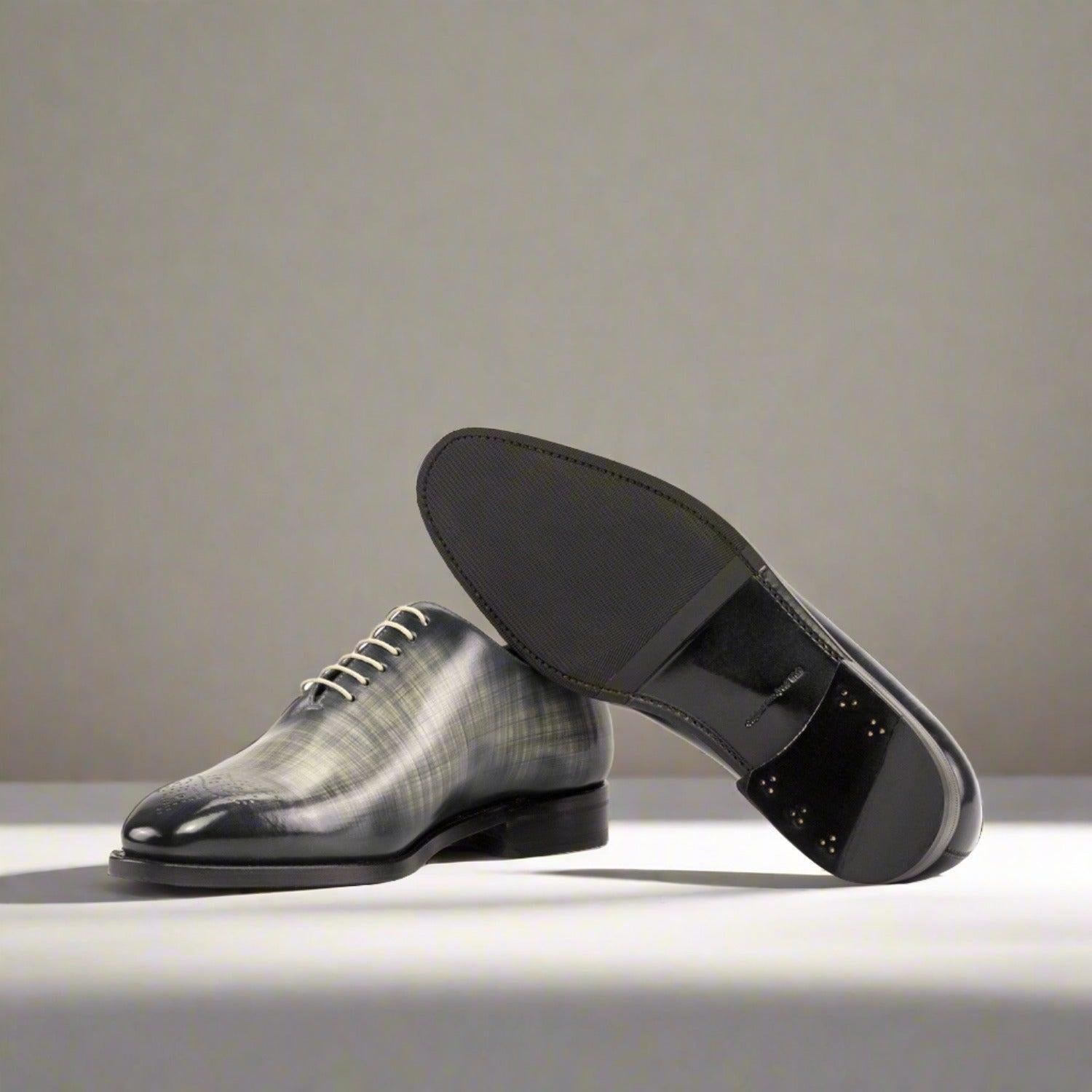 • Ambrogio Handmade Men's Shoes Gray Patina Leather Wholecut Oxfords (AMB2345)