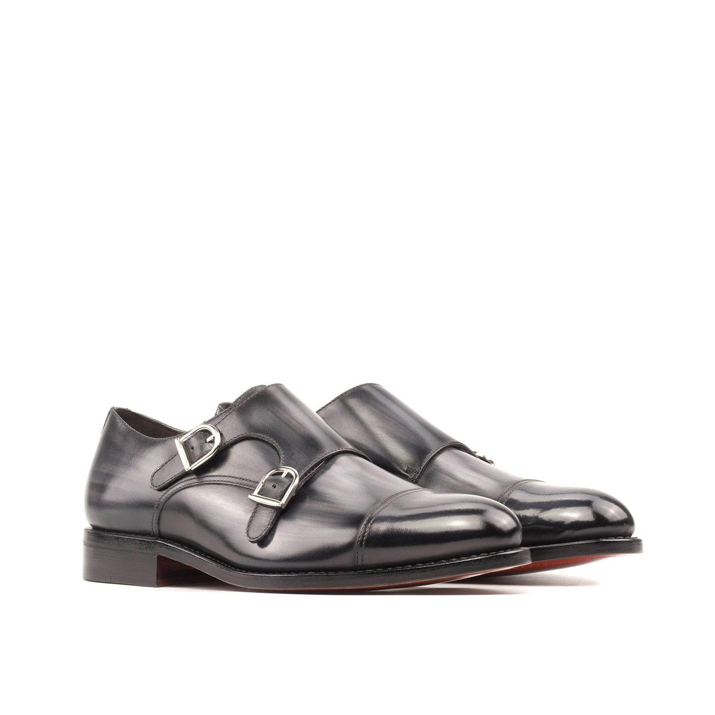 - Ambrogio Handmade Men's Shoes Patina Calf-Skin Leather Double Monk Loafer (AMB2588)