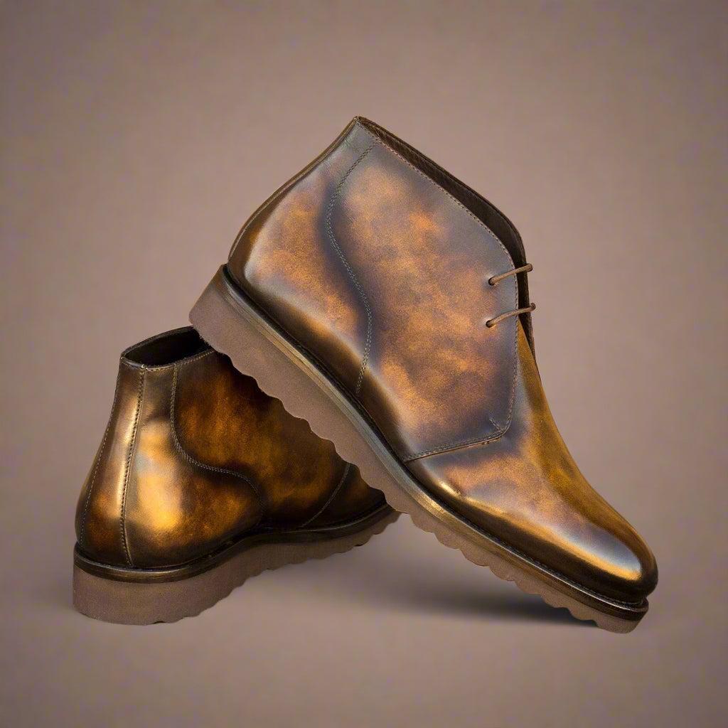 - Ambrogio Handmade Men's Shoes Tobacco Patina Leather Chukka Boots (AMB2286)