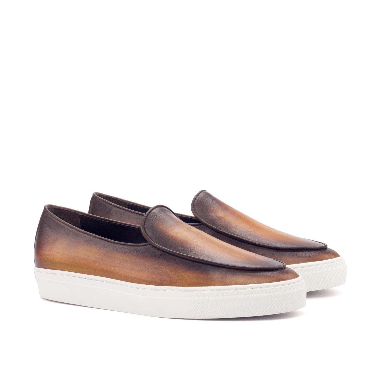 - Ambrogio 3139 Men's Shoes Cognac Patina Leather Slip-On Belgian Sneakers (AMB1134)