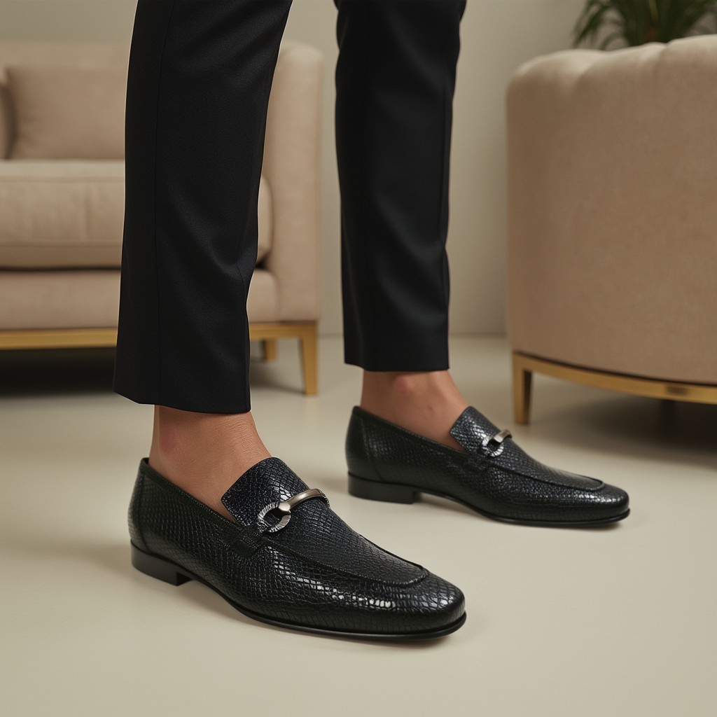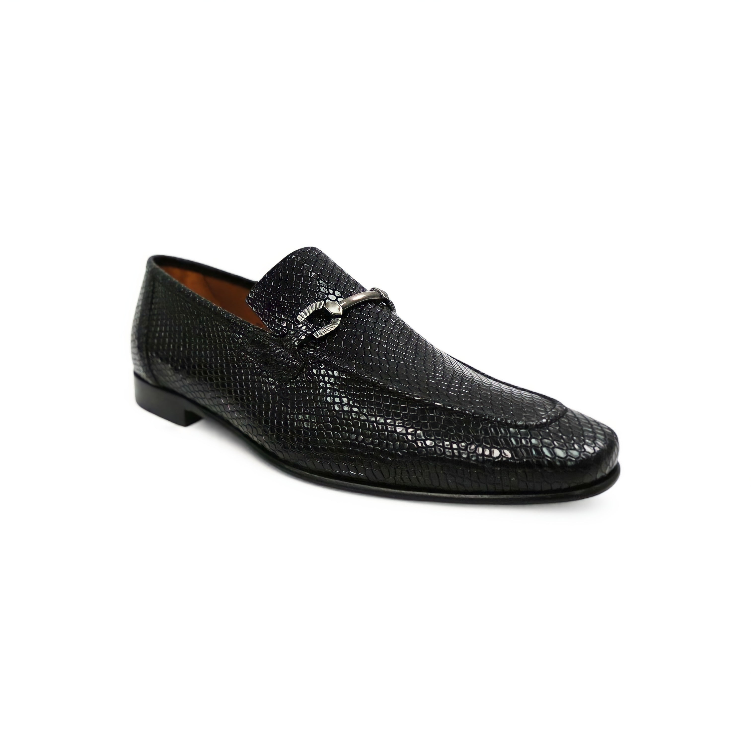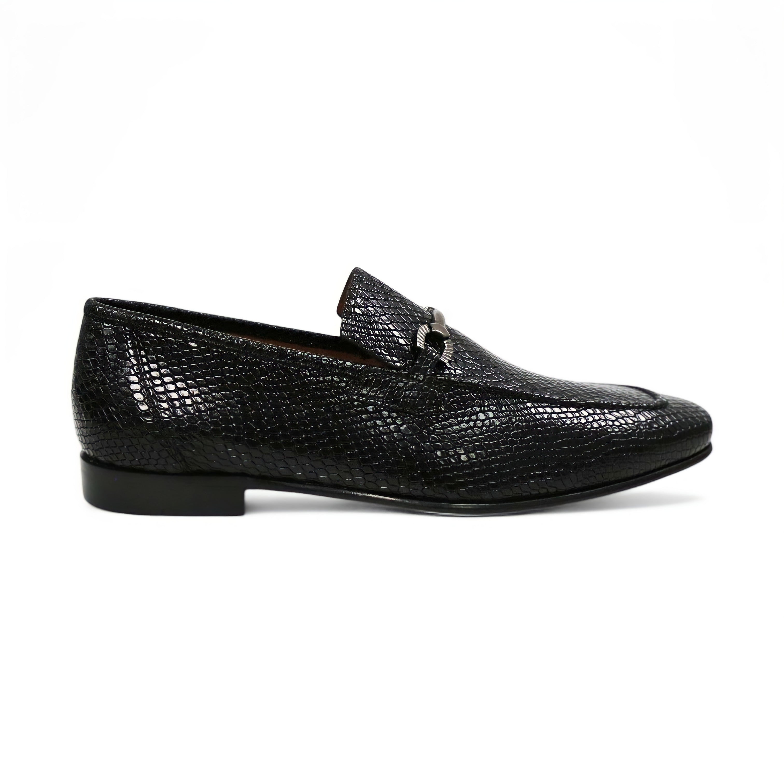 Ambrogio by Mezlan Black Snake Print Leather Horsebit Loafers (AMZ1015) by Ambrogio reflects the craftsmanship and heritage behind premium European design. Created with attention to detail and high-quality materials, this Men's Shoes delivers a refined balance of elegance, comfort, and lasting quality.
