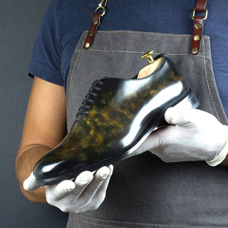 Ambrogio Men's Handmade Custom Made Shoes Green Sylvan Cezanne Patina Leather Wholecut Oxfords (AMB1647)