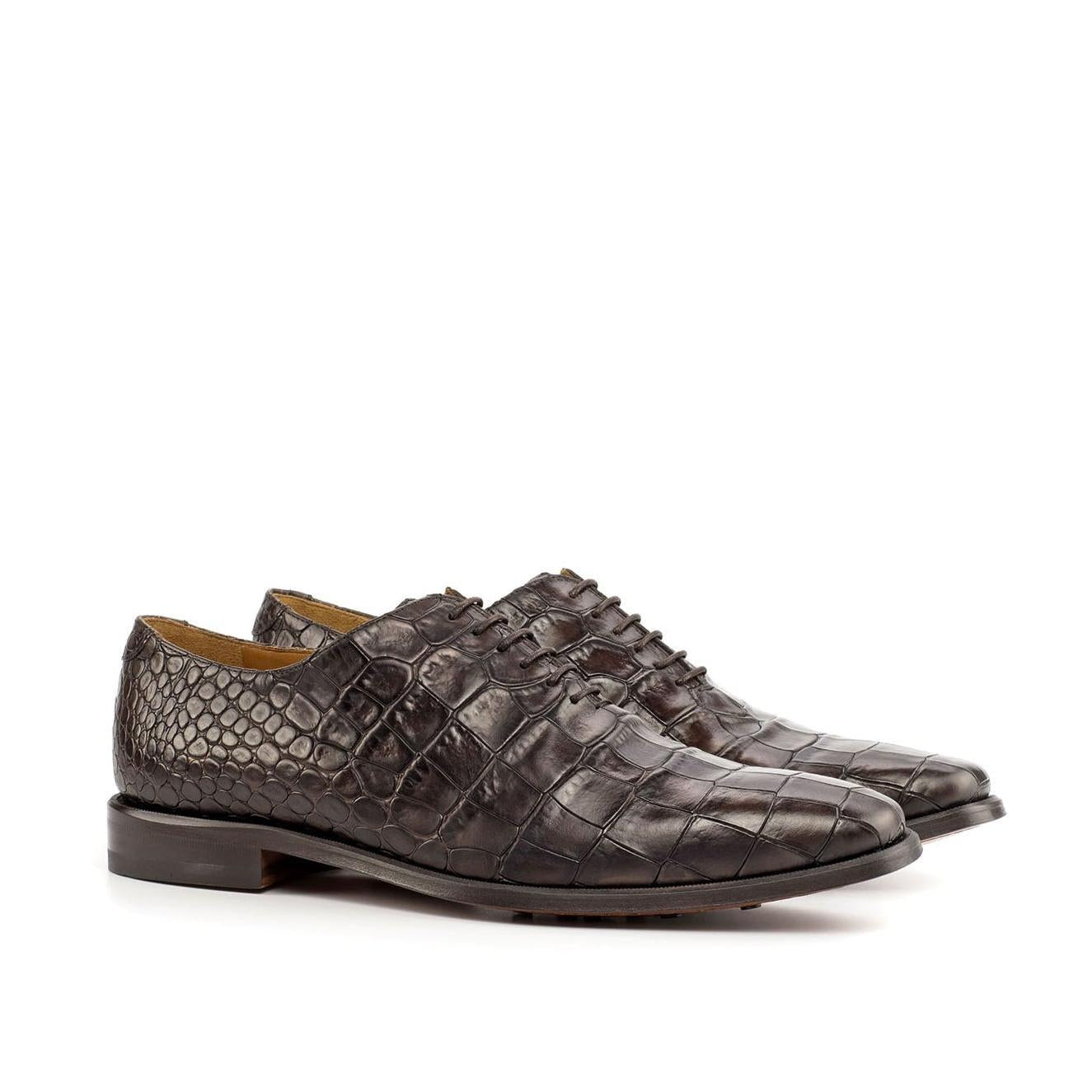 - Ambrogio 4479 Handmade Custom Men's Shoes Brown Crocodile Print / Calf-Skin Leather Whole Cut Oxfords (AMB1709)