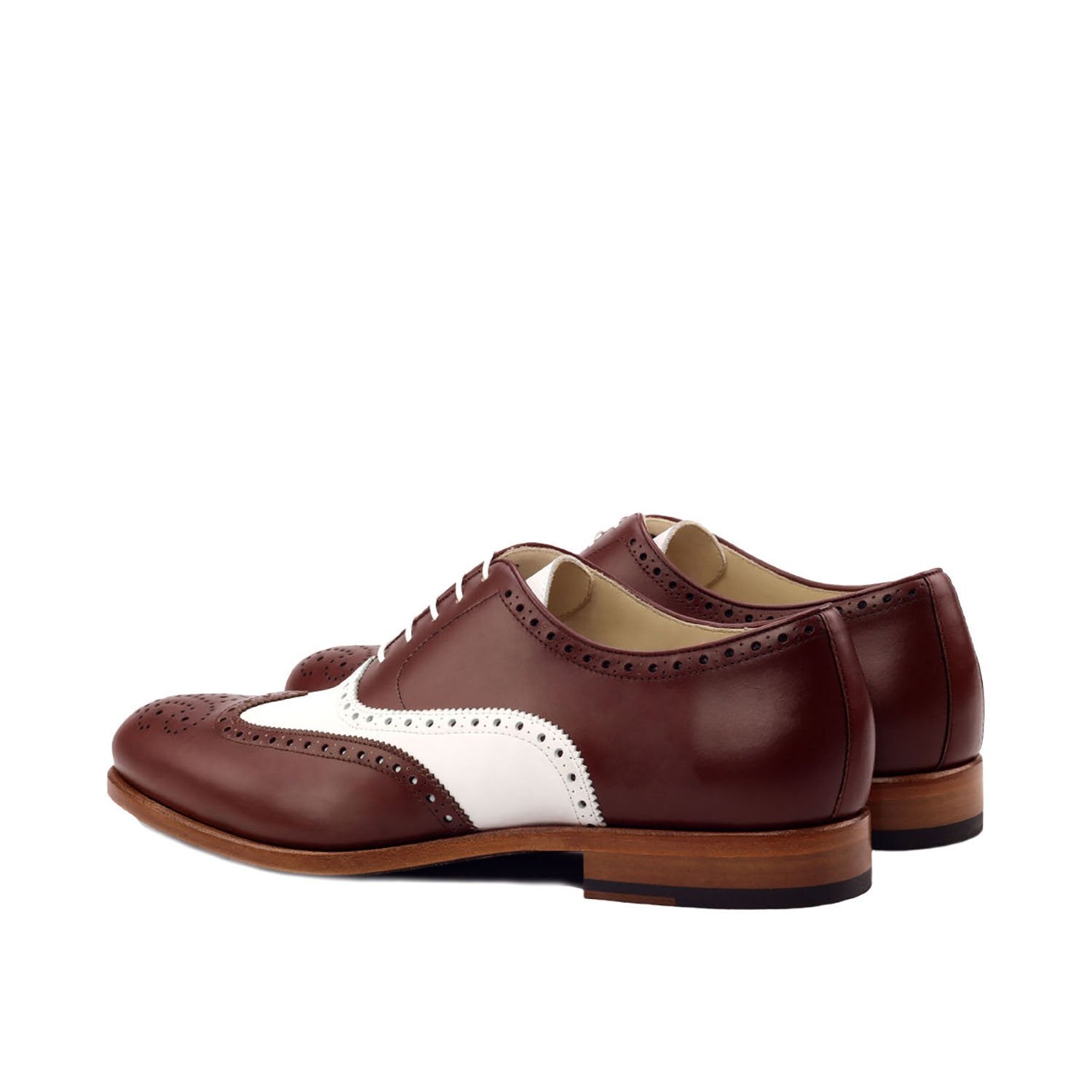 Ambrogio Handmade Custom Brown & White Calf-Skin Leather Full Brogue Oxfords (AMB2113) by Ambrogio reflects the craftsmanship and heritage behind premium European design. Created with attention to detail and high-quality materials, this Men's Shoes delivers a refined balance of elegance, comfort, and lasting quality.