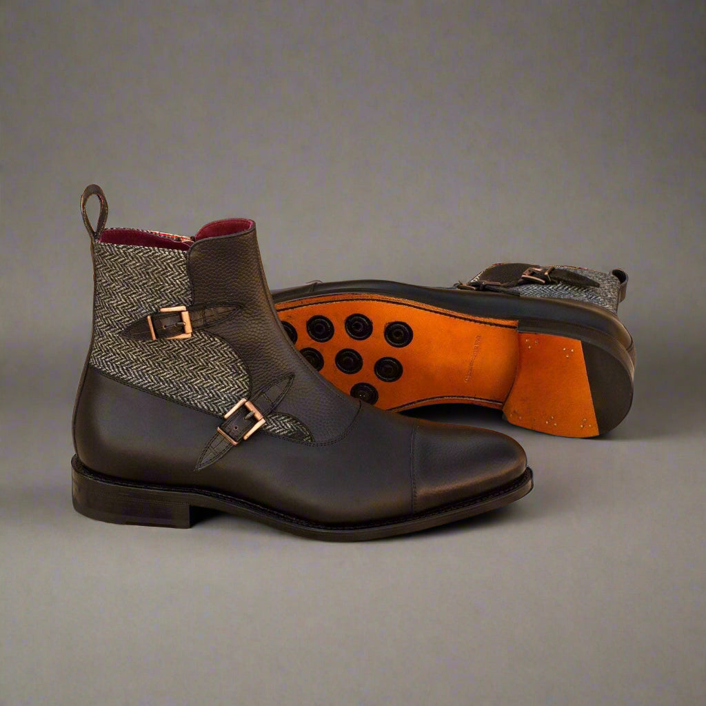 - Ambrogio 3540 Bespoke Custom Men's Shoes Black Fabric / Crocodile Print /Pebble Grain / Calf-Skin Leather Atticus Boots (AMB1454)