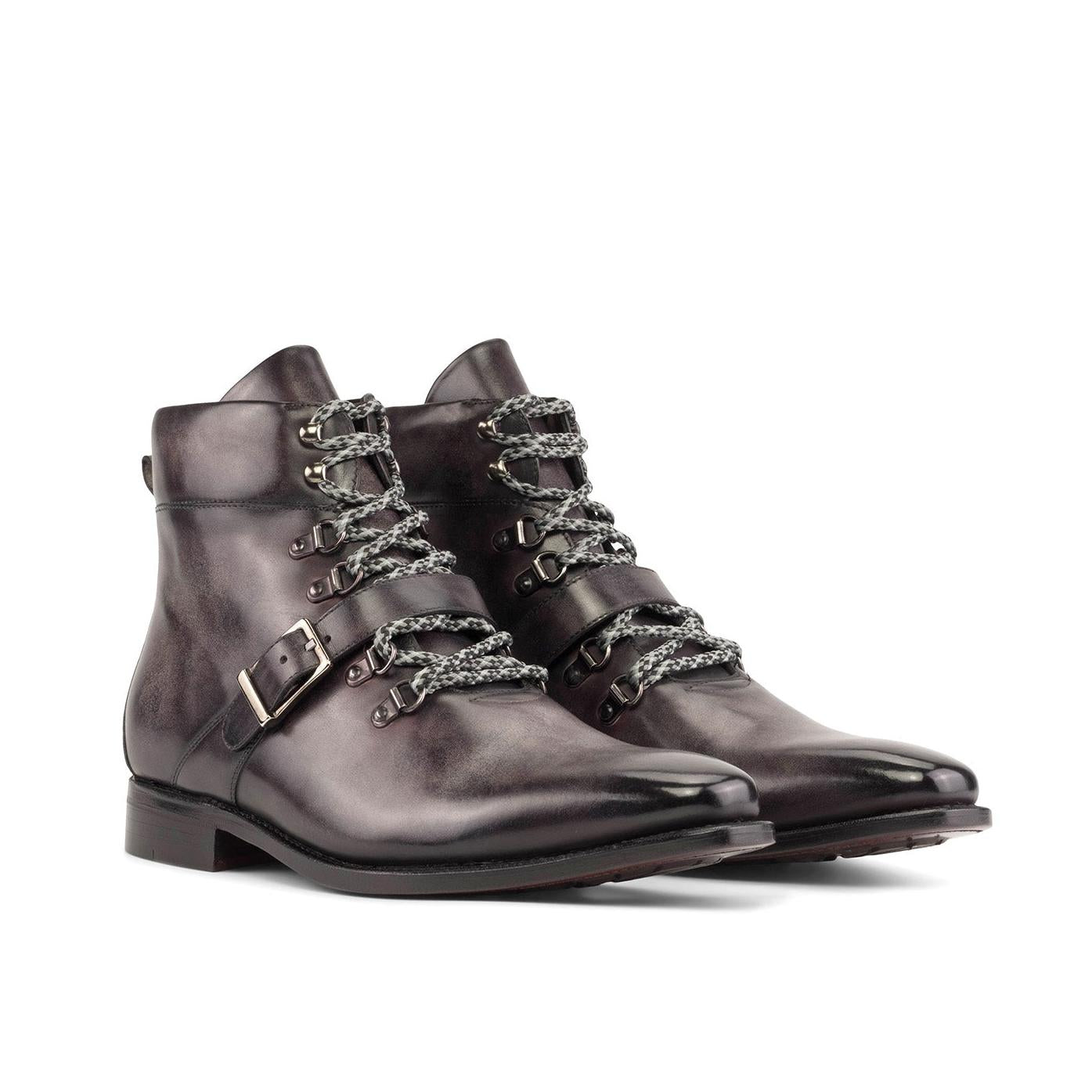 - Ambrogio Handmade Men's Shoes Aubergine Patina Leather Hiking Boots (AMB2373)