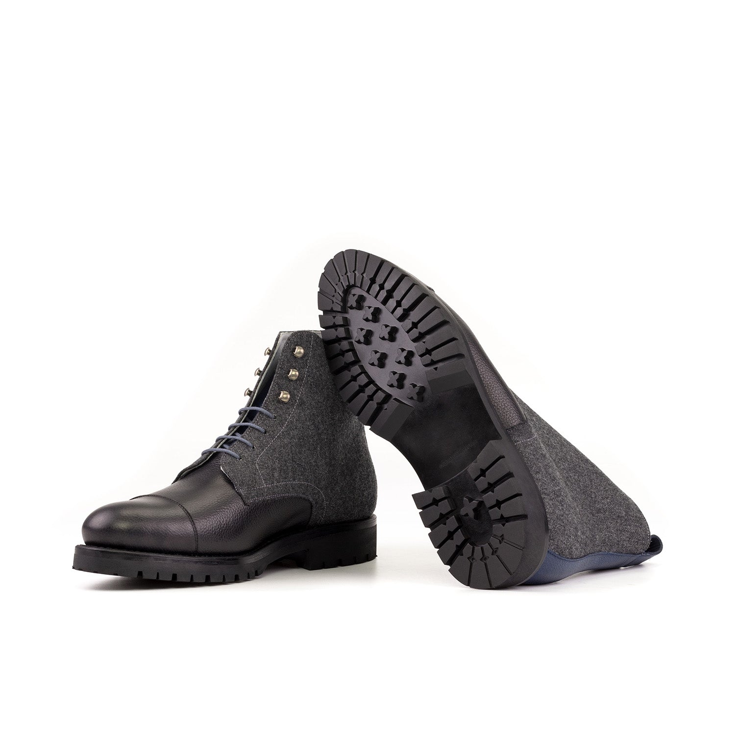 - Ambrogio Handmade Men's Shoes Black, Navy & Gray Flannel Fabric / Full Grain Leather Jumper Boots (AMB2410)