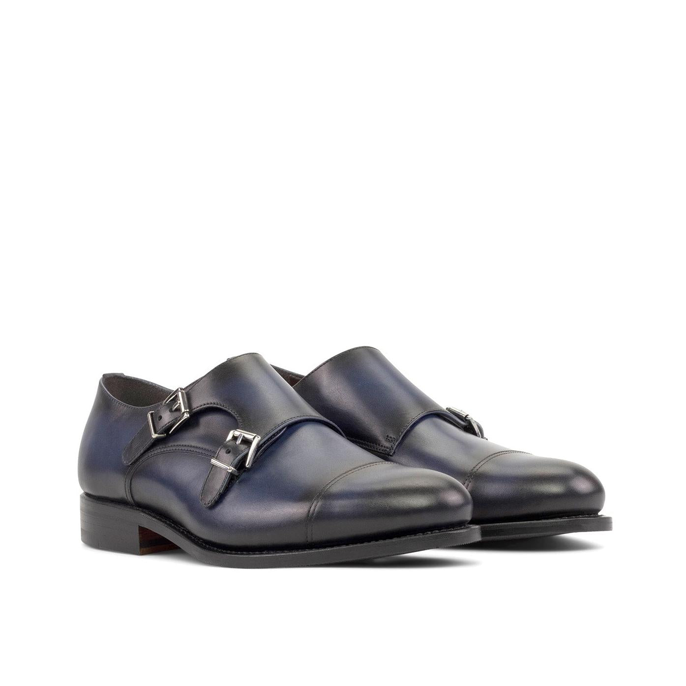 - Ambrogio Handmade Men's Shoes Blue Calf-Skin Leather Cap-Toe Monk-Straps Loafers (AMB2300)