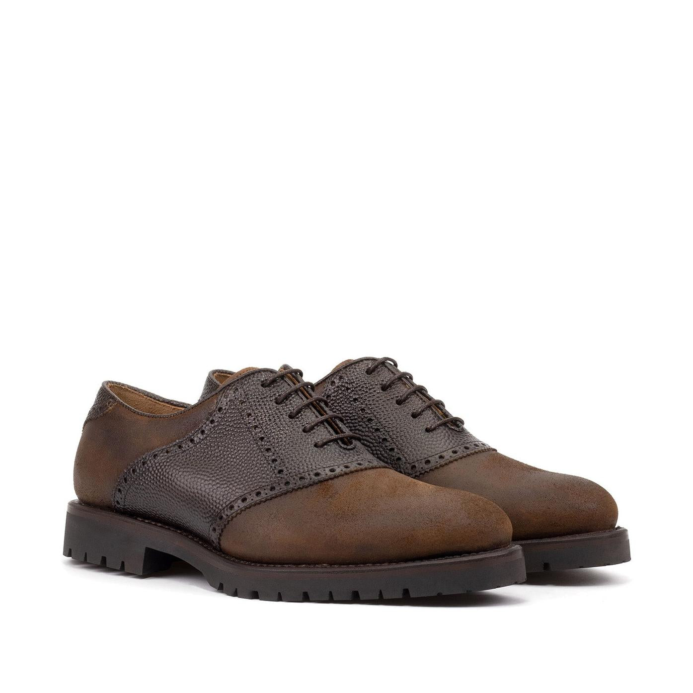 - Ambrogio Handmade Men's Shoes Brown Waxed Suede / Pebble Grain Leather Saddle Oxfords (AMB2557)