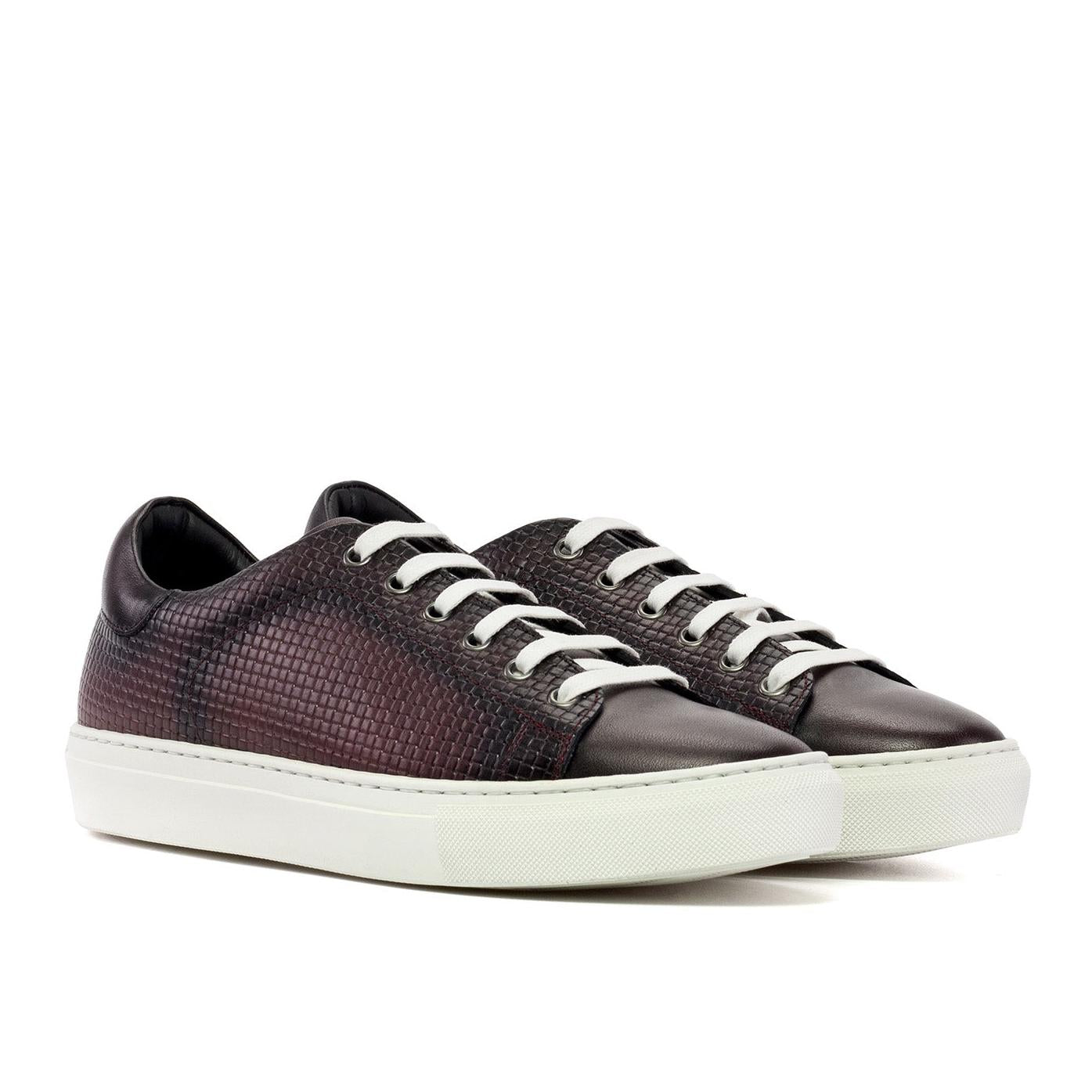 - Ambrogio Handmade Men's Shoes Burgundy Calf-Skin / Woven Leather Trainer Sneakers (AMB2484)