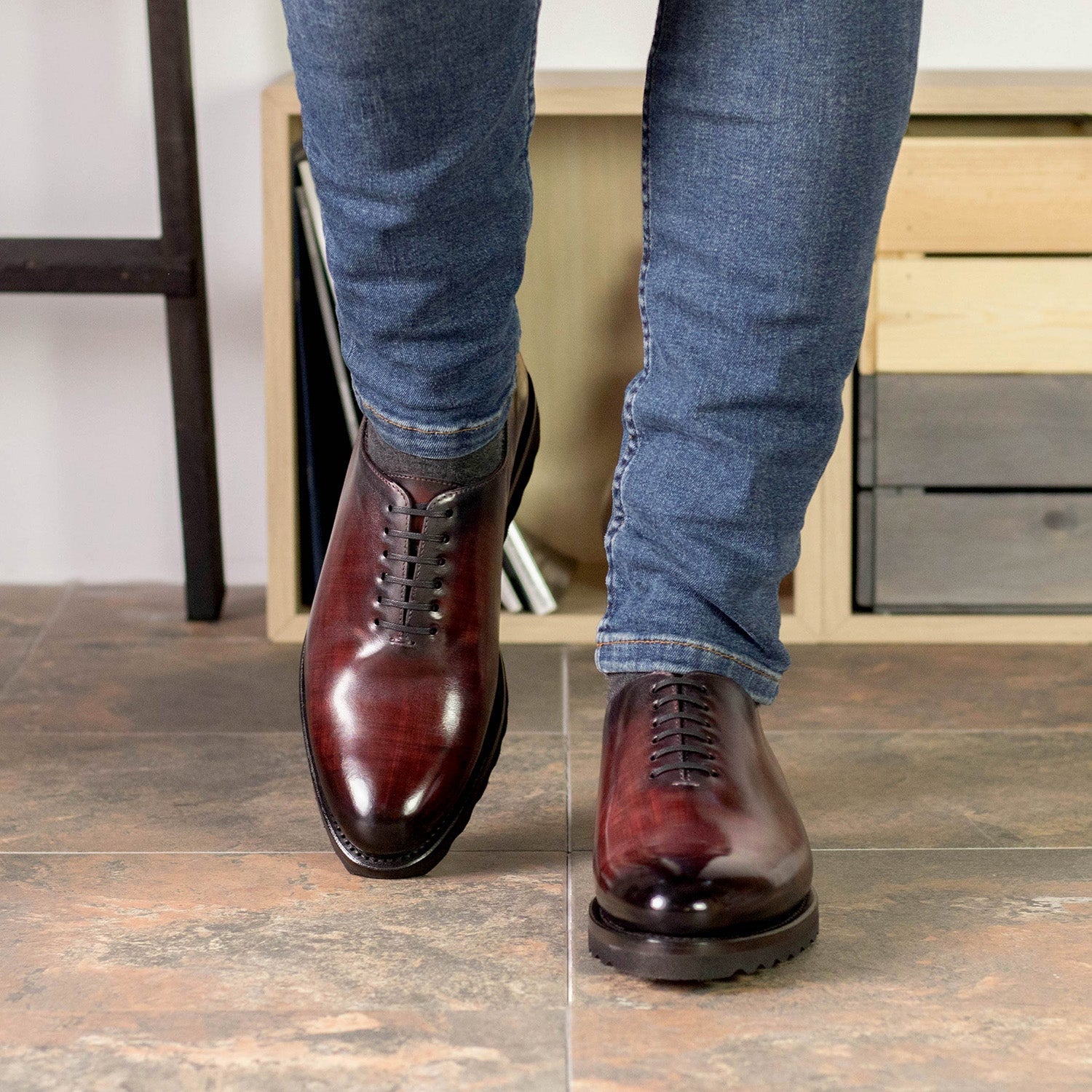 - Ambrogio Handmade Men's Shoes Burgundy Patina Leather Whole-Cut Oxfords (AMB2369)