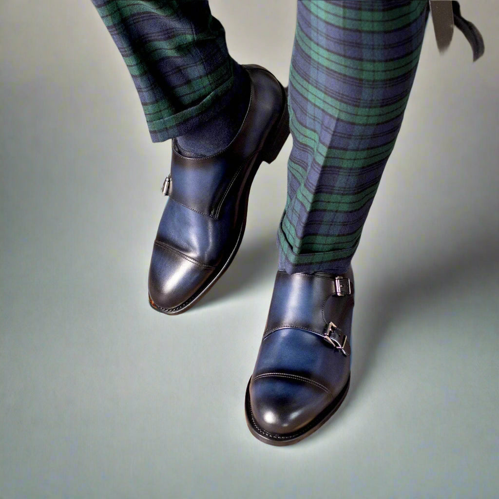- Ambrogio Handmade Men's Shoes Calf-Skin Leather Double Monk-Strap Loafer (AMB2573)