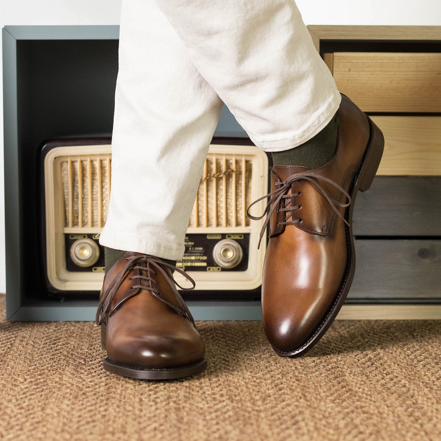 - Ambrogio Handmade Men's Shoes Cognac Calf-Skin Leather Derby s (AMB2465)
