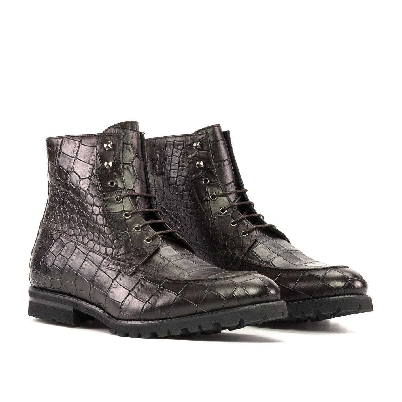 - Ambrogio Handmade Men's Shoes Dark Brown Crocodile Print Leather Moccasin Boots (AMB2346)