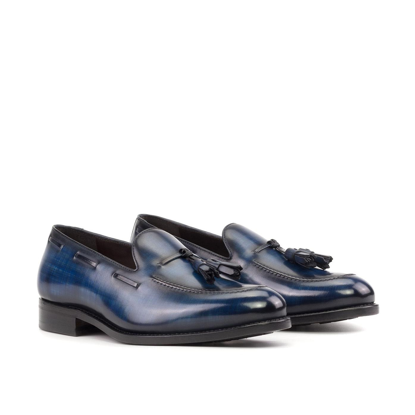- Ambrogio Handmade Men's Shoes Denim Patina Leather Tassels Loafers (AMB2326)