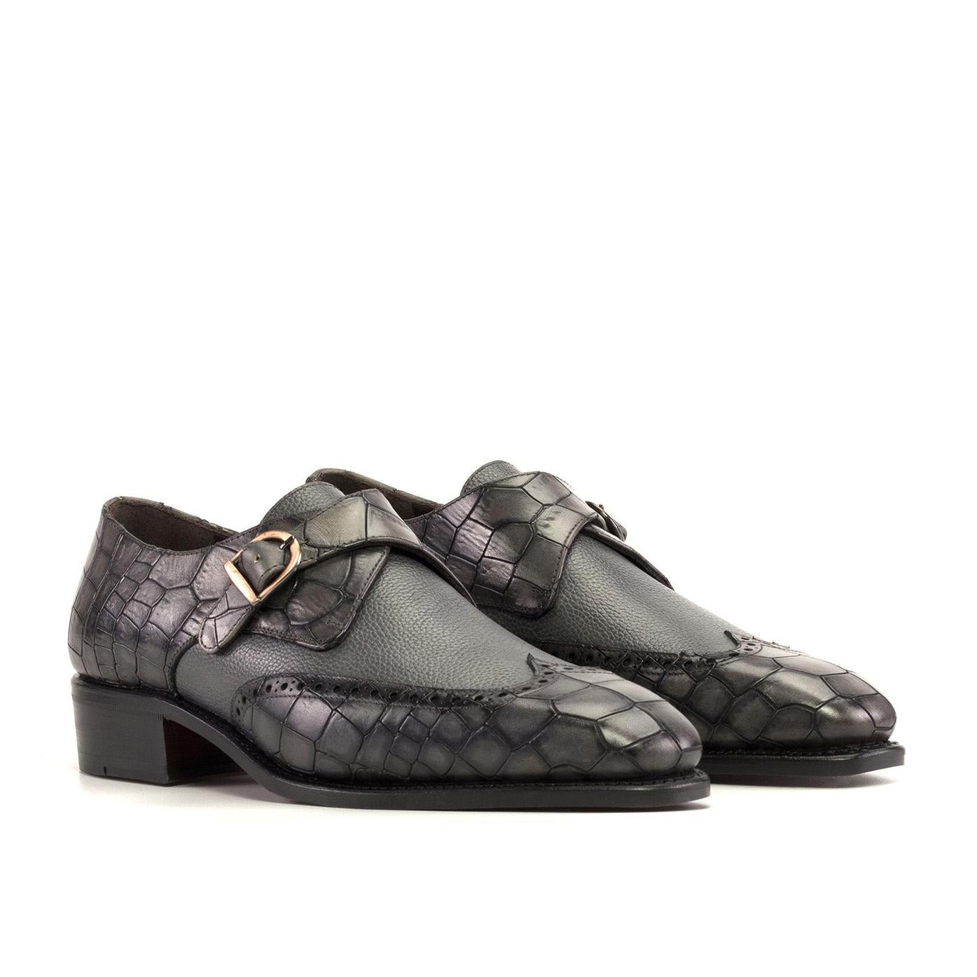 Ambrogio Handmade Gray Crocodile Print / Calf-Skin Leather Monk Strap (AMB2337) by Ambrogio reflects the craftsmanship and heritage behind premium European design. Created with attention to detail and high-quality materials, this Men's Shoes delivers a refined balance of elegance, comfort, and lasting quality.