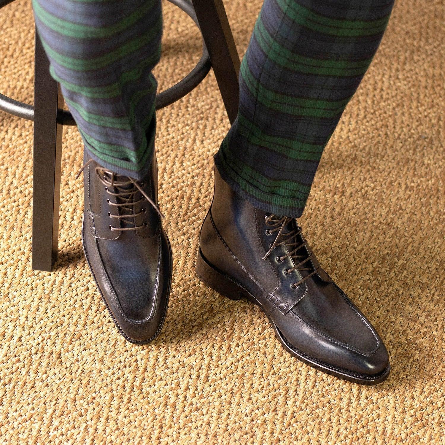 - Ambrogio Handmade Men's Shoes Navy Calf-Skin Leather Moccasin Boots (AMB2389)
