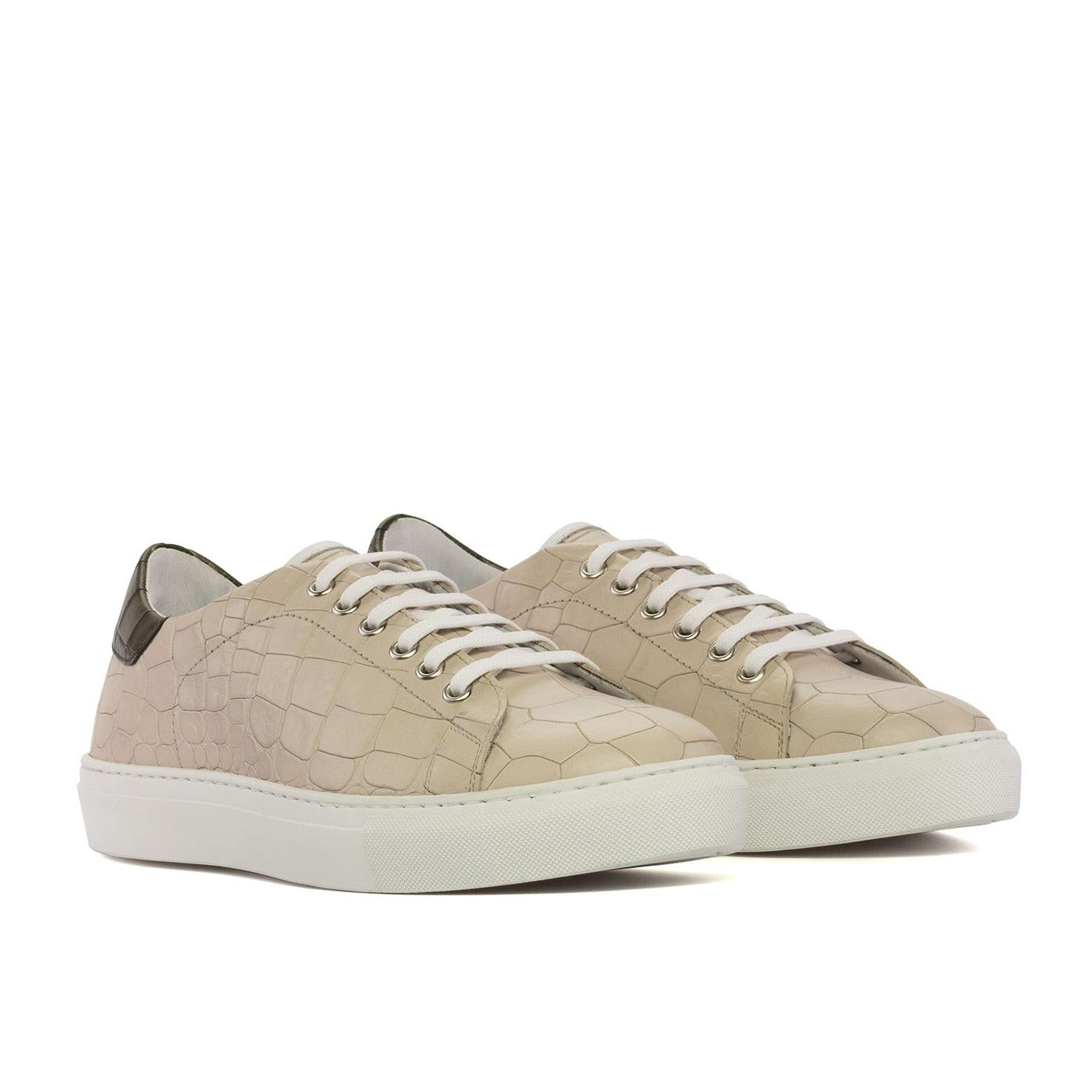 - Ambrogio Handmade Men's Shoes Nude & Olive Crocodile Print Leather Low-Top Sneakers (AMB2381)