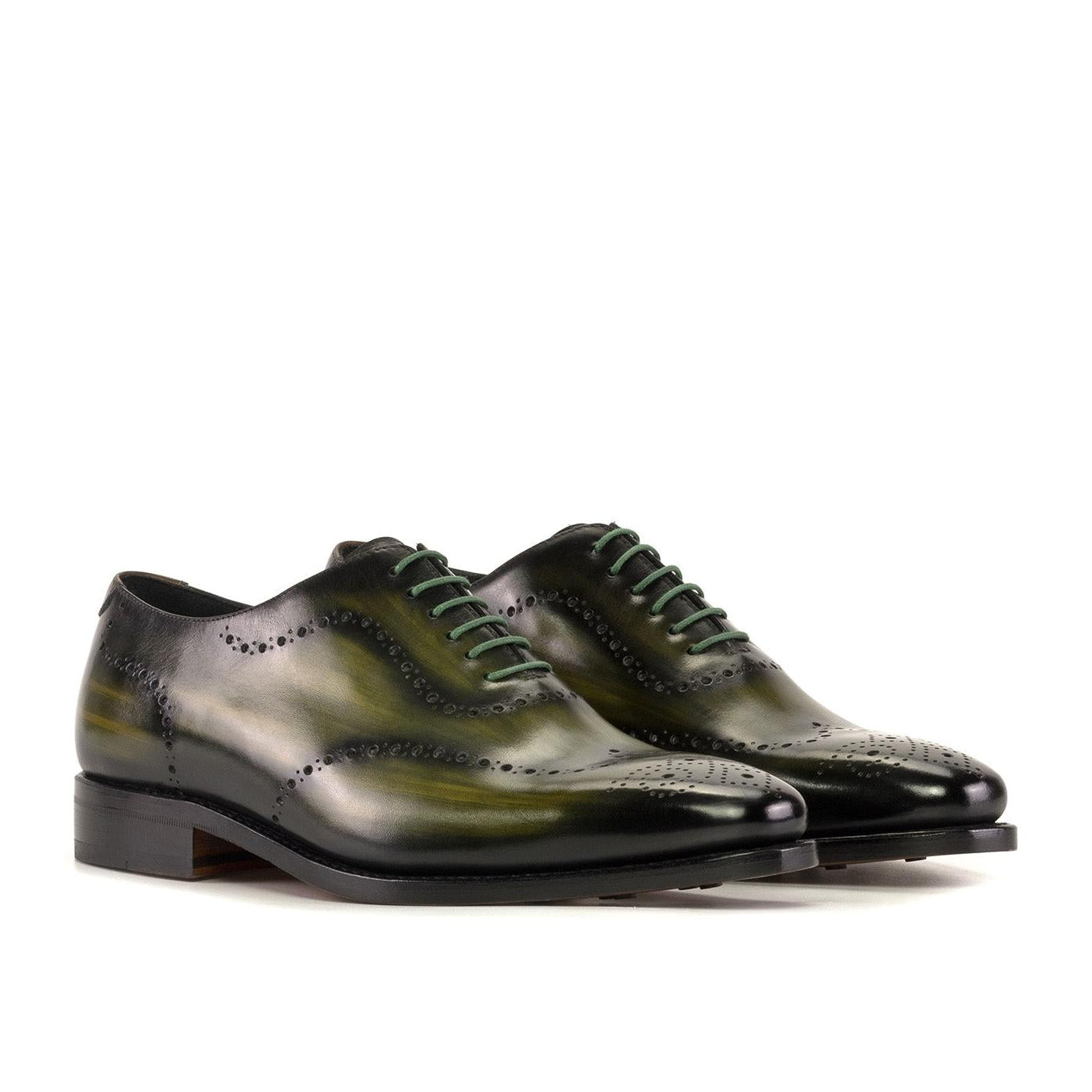 - Ambrogio Handmade Men's Shoes Olive Patina Leather Whole-cut Oxfords (AMB2423)