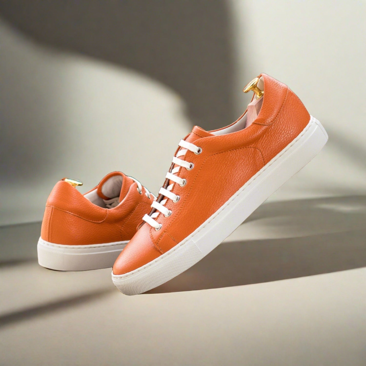 Ambrogio Handmade Orange Full Grain Leather Trainer Sneakers (AMB2444) by Ambrogio reflects the craftsmanship and heritage behind premium European design. Created with attention to detail and high-quality materials, this Men's Shoes delivers a refined balance of elegance, comfort, and lasting quality.