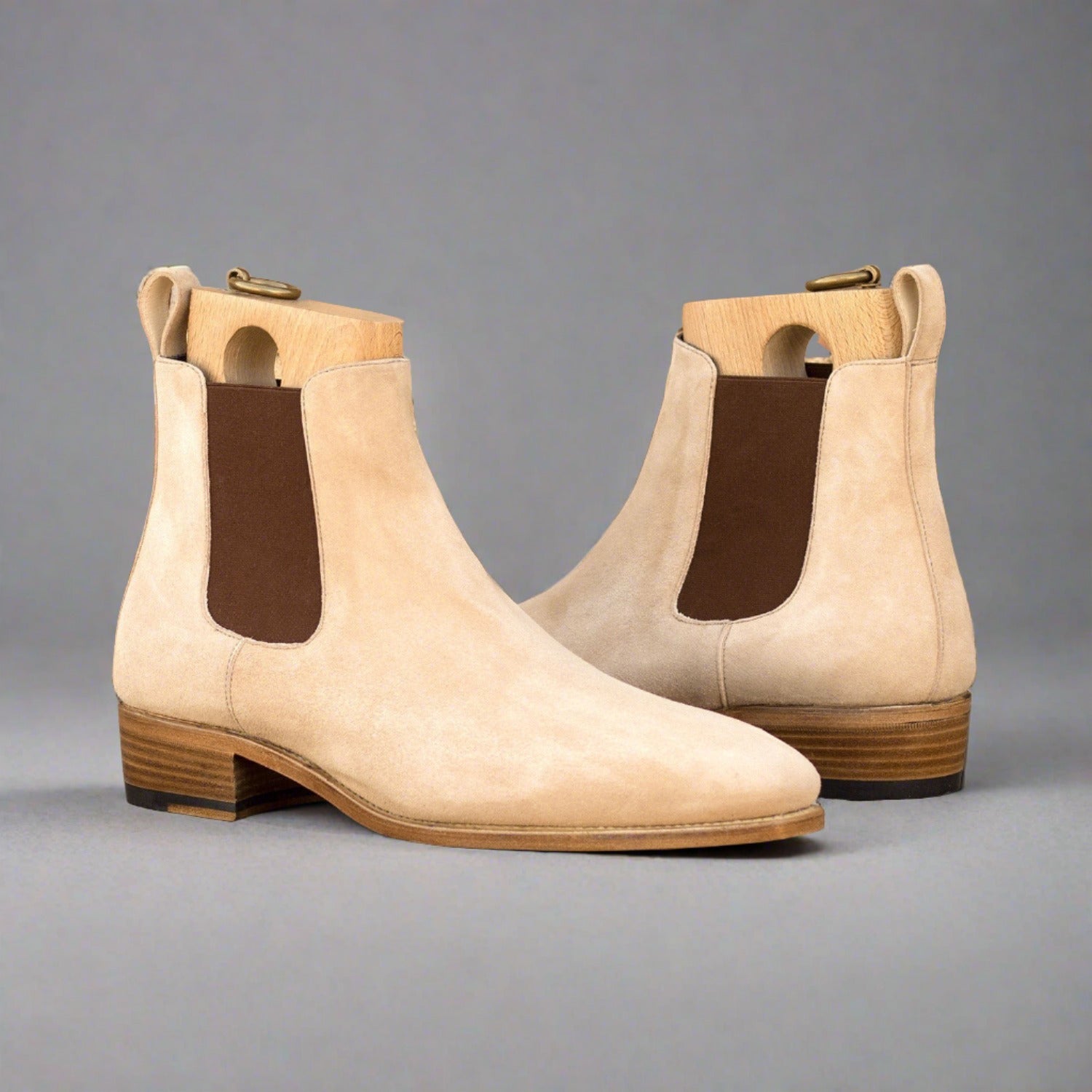 - Ambrogio Handmade Men's Shoes Taupe Suede Leather Chelsea Boots (AMB2450)