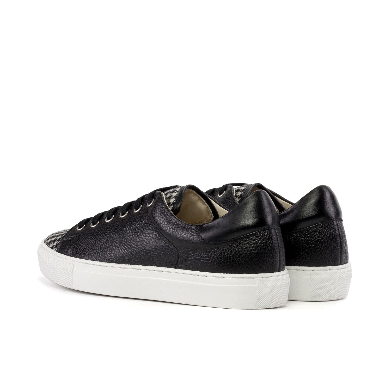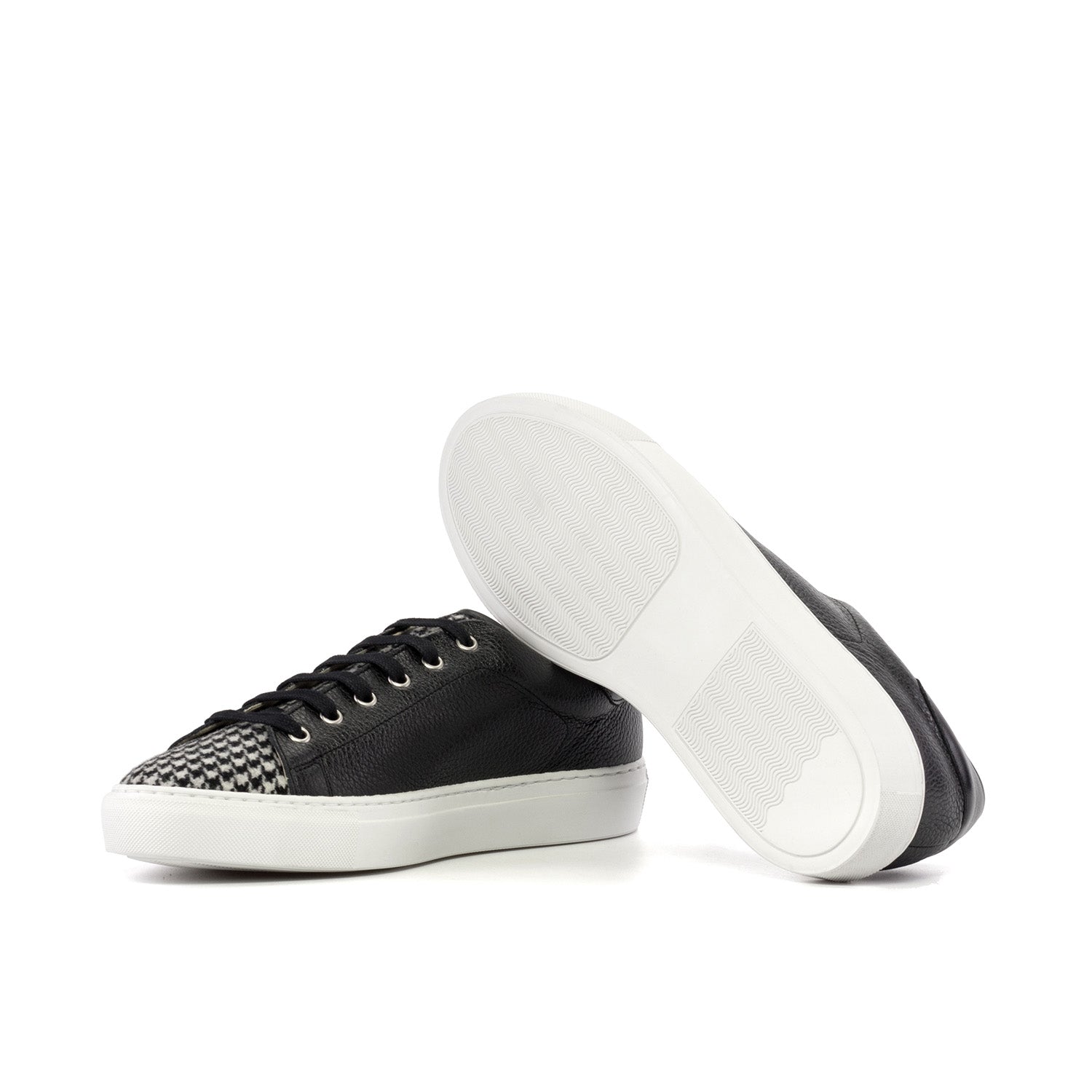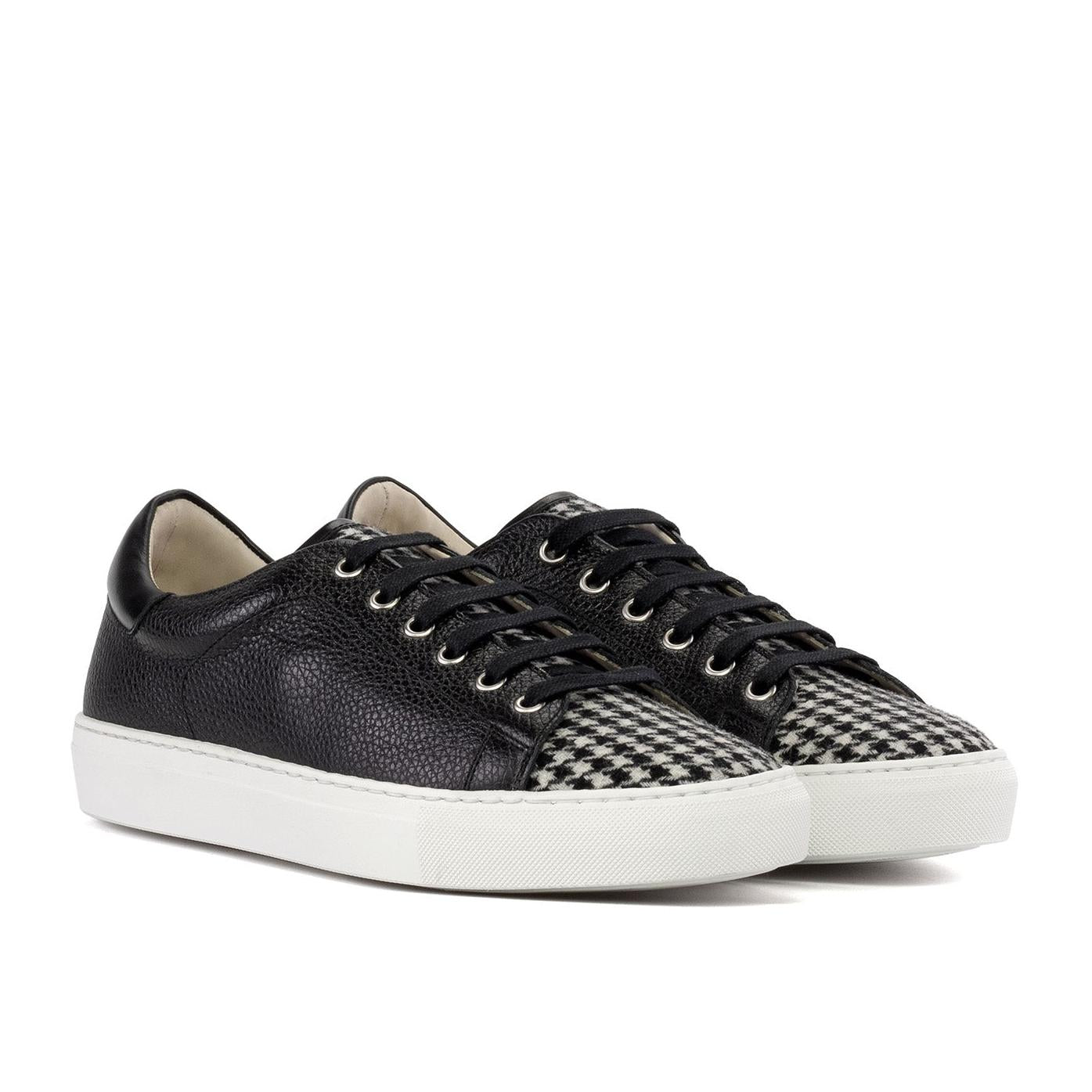 - Ambrogio Handmade Men's Shoes Black & White Houndstooth / Full Grain Leather Trainer Sneakers (AMB2547)