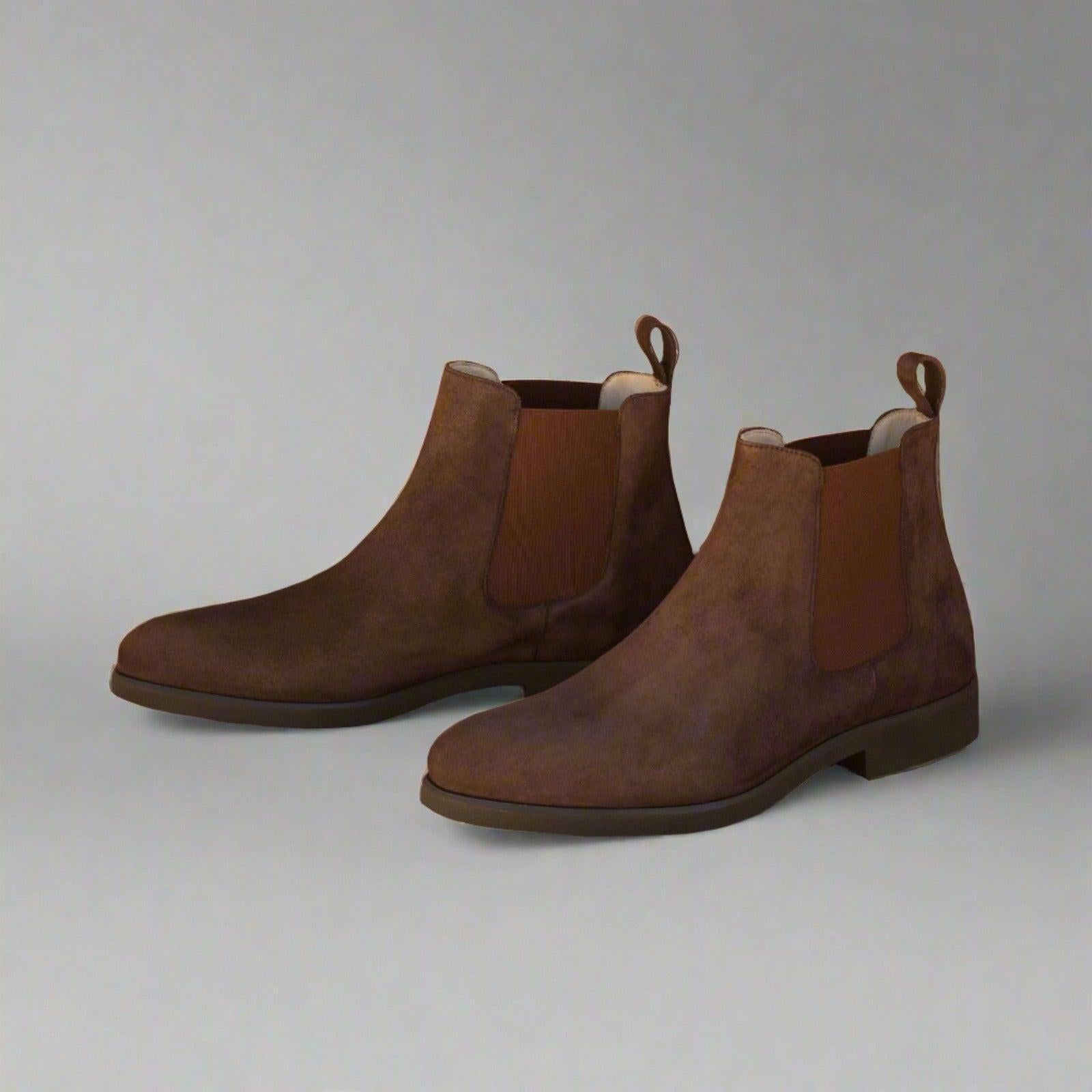Ambrogio Men's Handmade Custom Made Shoes Brown Suede Chelsea Boots (AMB1011)