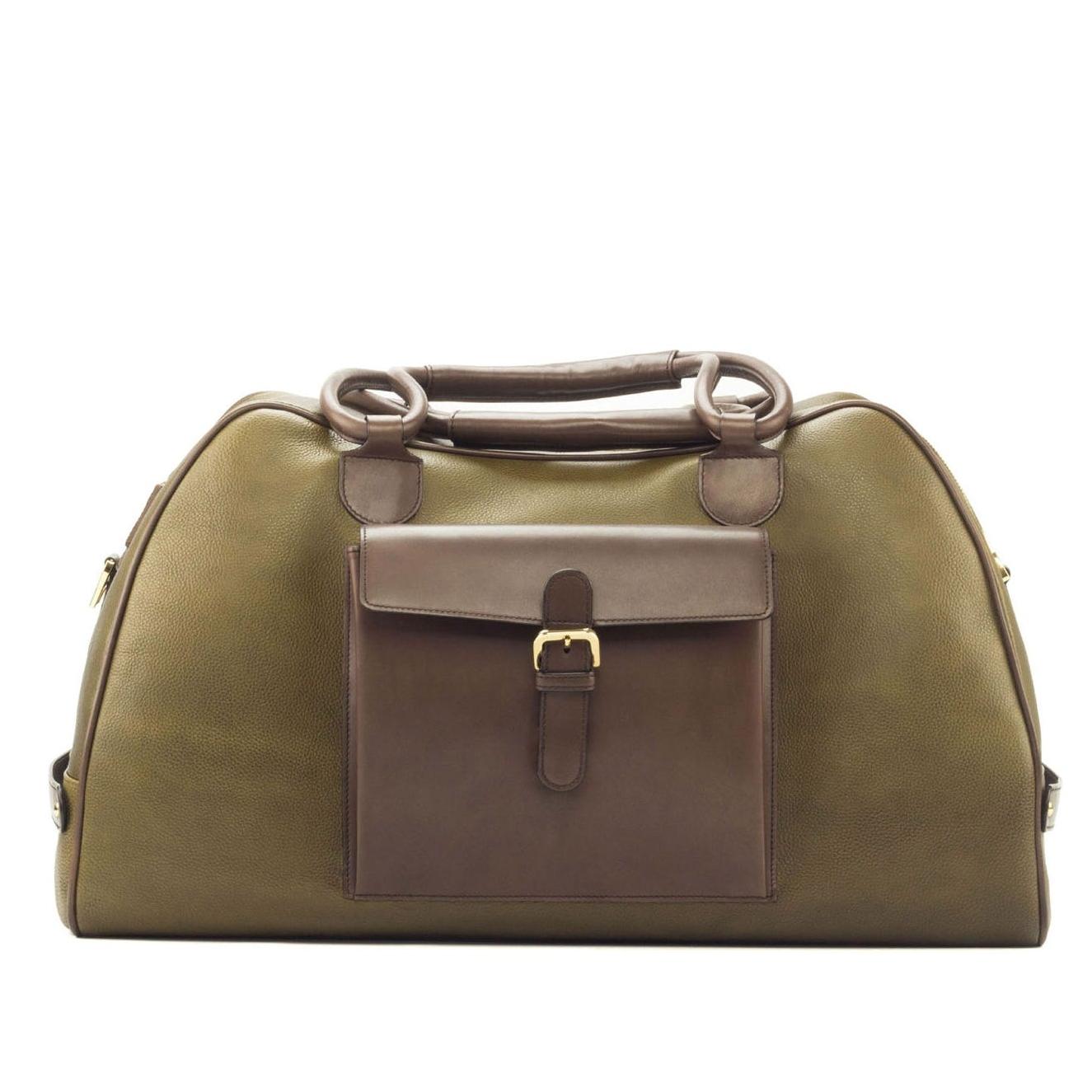 - Ambrogio 2929 Men's Bag Brown & Olive Full Grain / Calf-Skin Leather Travel Duffle Bag (AMBH1007)