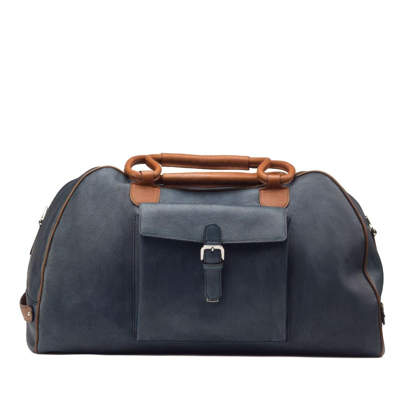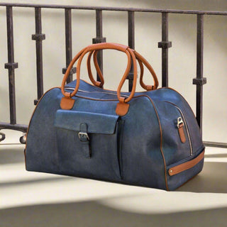 Ambrogio Men's Bag Cognac, Brown & Navy Full Grain Calf-Skin Leather Travel Duffle Bag (AMBH1004)
